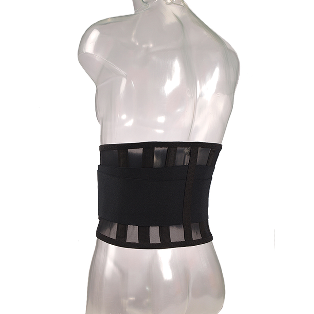 Модель эластичного поясничного корсета со средней степенью фиксации. Требуемый уровень фиксации изделия создается металлическими ребрами жесткости. Сетчатая основа создает оптимальные условия для нормального влаго- и воздухообмена. Распределение фиксации и снятие нагрузки с поясницы обеспечивается специальной системой застежек. Для дополнительной фиксации и подгона корсета под особенности тела пациента предусмотрены две ленты-стяжки. Корсет может надеваться на тело либо поверх хлопкового белья. Изделие легко подгоняется по фигуре, не создает дискомфорта при использовании.