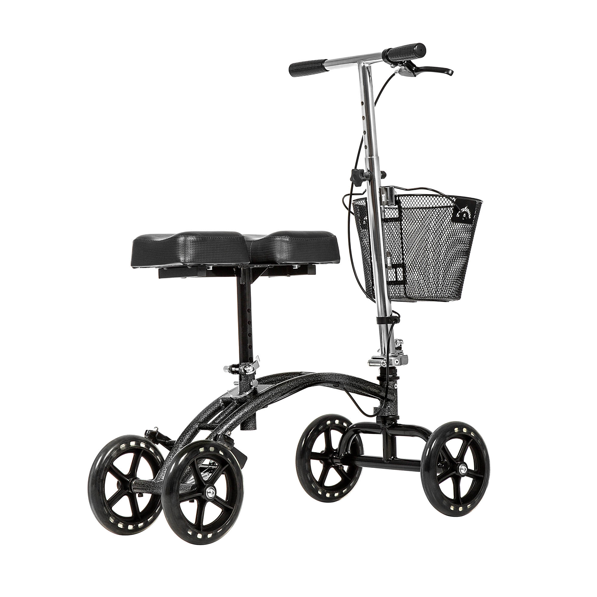 ОсобенностиМягкая опора под колено. Регулировка ручек по высоте, ручной тормоз. Съемная корзина для вещей.