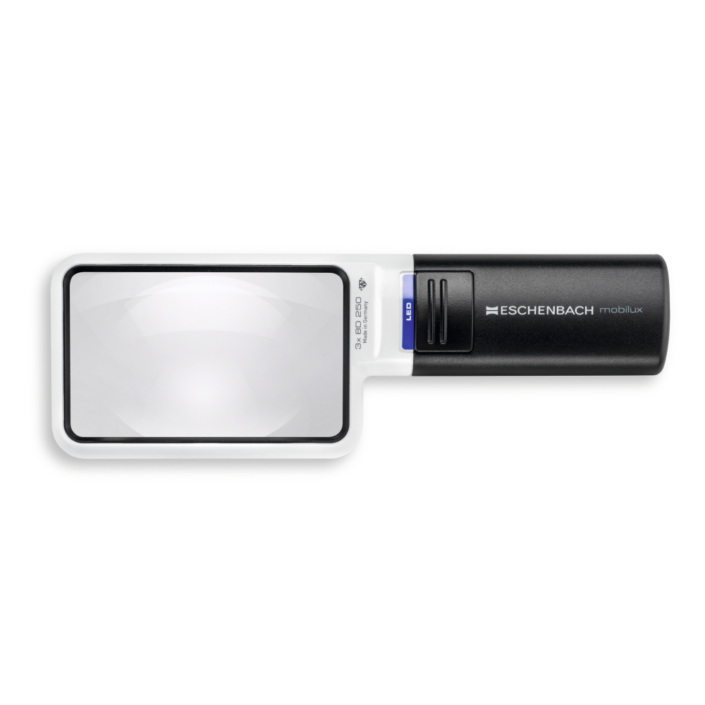 Асферическую лупу mobilux LED от немецкого бренда Eschenbach - лучший друг и незаменимый спутник для слабовидящих людей. Это стильное устройство предназначено для чтения мелкого шрифта и является незаменимым помощником в быту, на работе и в путешествии. В комплекте с лупой есть два фильтра, с помощью которых можно задать наиболее подходящую цветовую температуру. Линза лупы имеет прочное антивандальное покрытие cera-tec и трехкратное увеличение, а светодиоды SMD и оптическая коллимационная система обеспечивают яркую, постоянную подсветку. Светодиодную лампочку менять не нужно - ее хватит на 50 000 часов непрерывной работы.