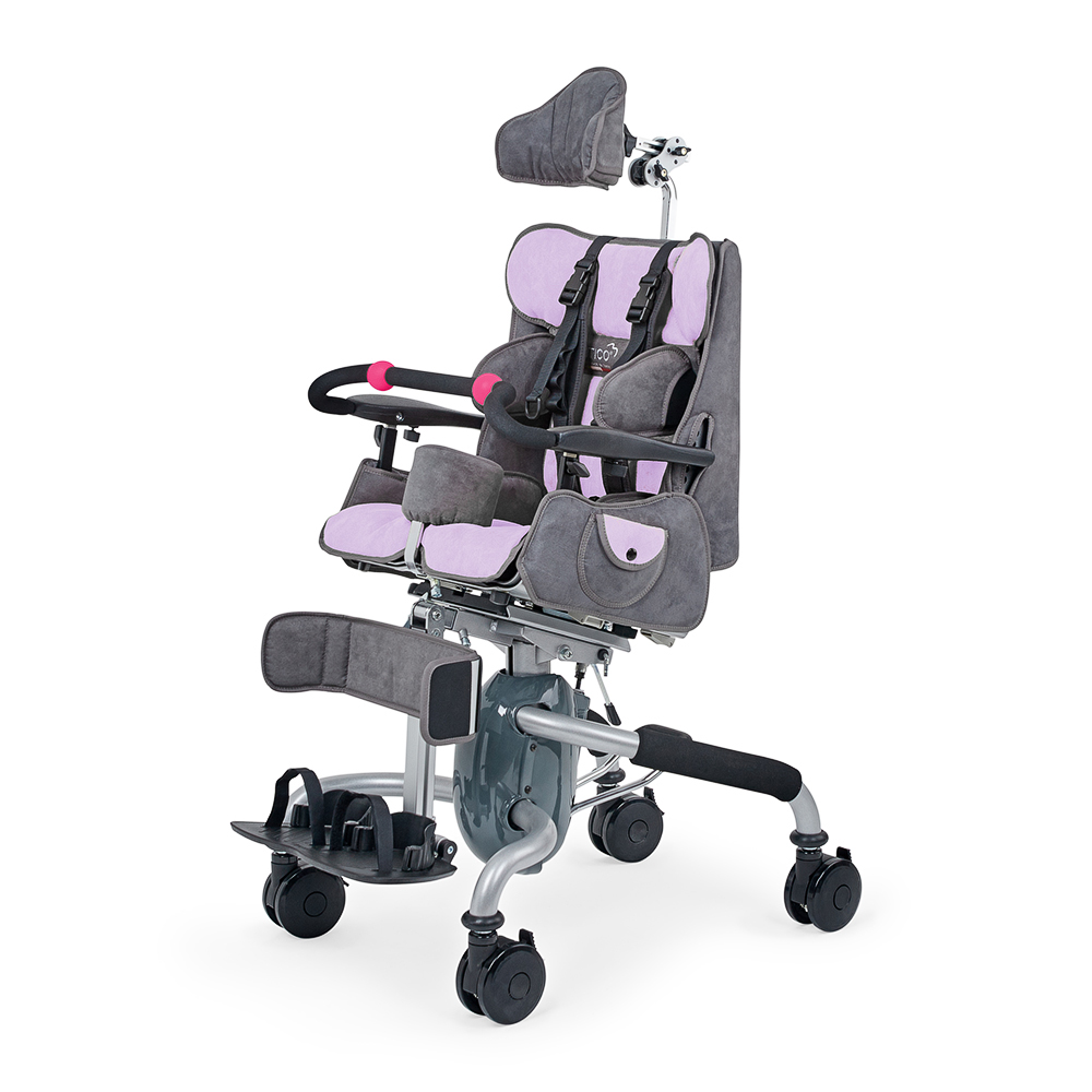 Итальянский бренд Fumagalli разработал специальную комплексную систему для передвижения детей с различными формами ДЦП – Mitico Simply Dentro, которая призвана обеспечить их комфорт, безопасность и социальное развитие. Кресло имеет эргономичную форму, не стесняет ребенка в движениях и позволяет ему участвовать в разных видах деятельности. Высота рамы и угол ее наклона регулируются, и это дает возможность родителям подойти вплотную к ребенку. Спинка принимает положение лежа – так ребенок сможет отдохнуть. Размер кресла подходит для детей в возрасте от 9 до 13 лет, а нежный лиловый цвет подходит для мальчиков, и девочек.
