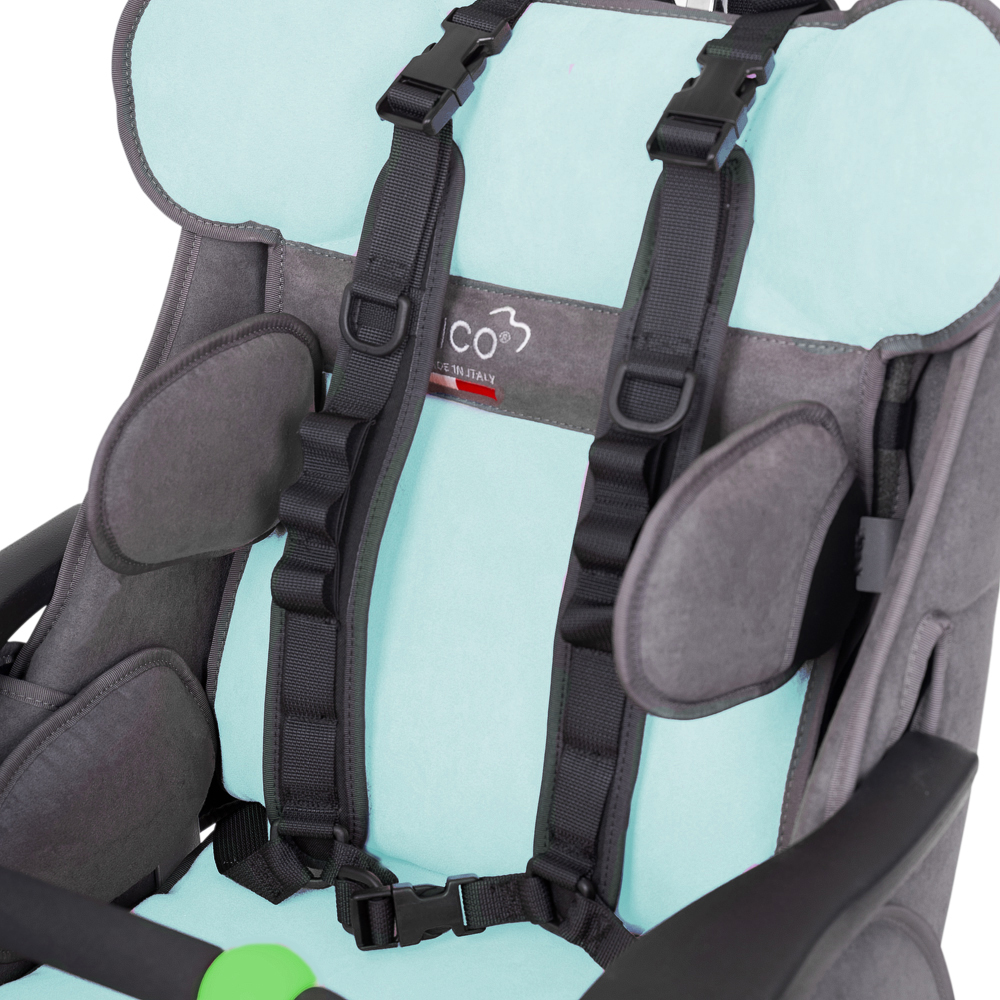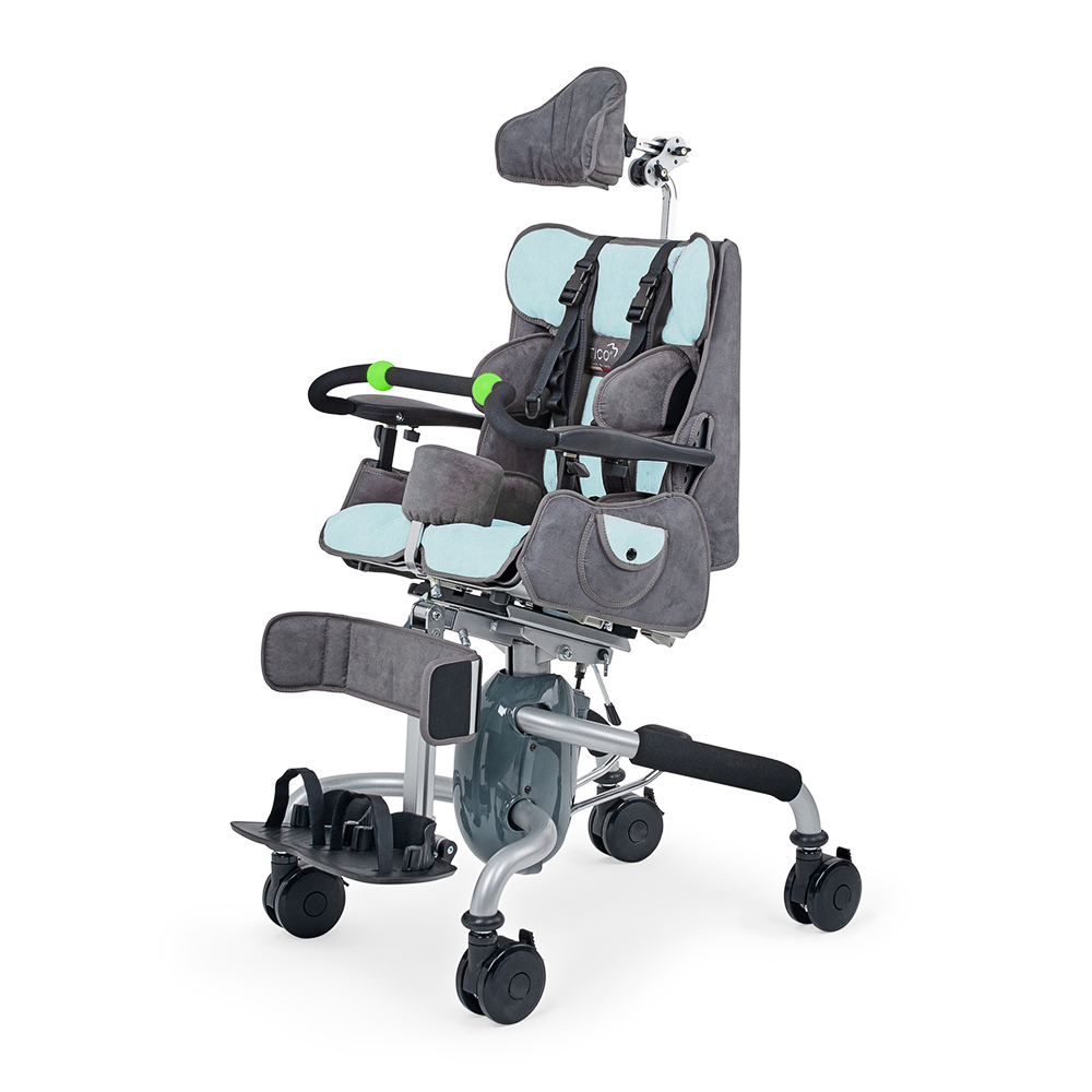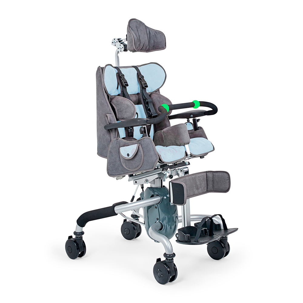 Знаменитый итальянский бред Fumagalli разработал комплексную систему Mitico Simply Dentro специально для передвижения детей с различными формами ДЦП. Она призвана обеспечить комфорт, безопасность и социальное развитие вашему ребенку. Кресло имеет эргономичную форму, не стесняет ребенка в движениях и позволяет ему участвовать в разных видах деятельности. Высота рамы и угол ее наклона регулируются, и это дает возможность родителям подойти вплотную к ребенку. Размер кресла подходит для детей в возрасте от 9 до 13 лет, а нежный голубой цвет понравится и детям, и родителям.