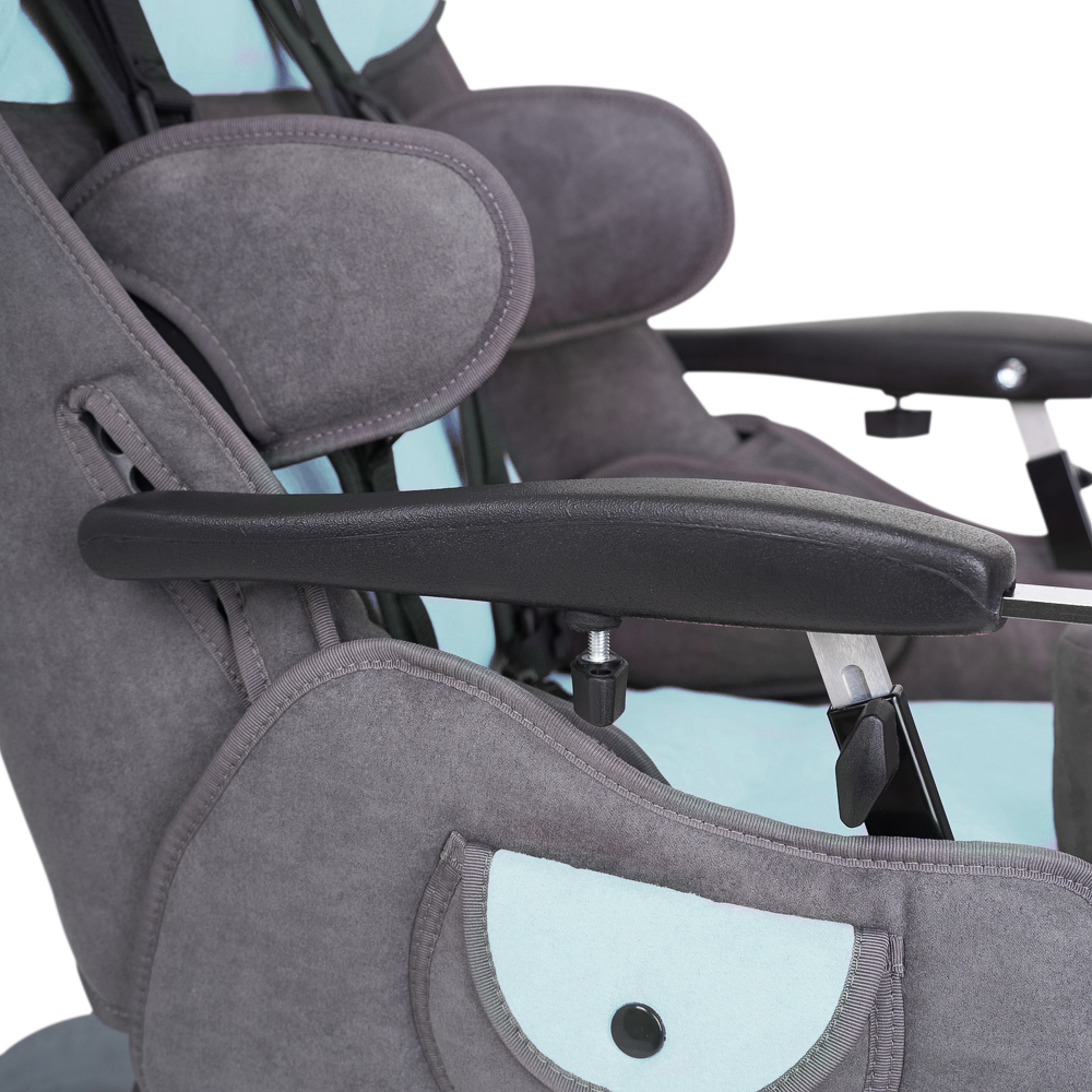Продуманная обшивкаМягкая дышащая обивка кресла снимается и легко чистится. Для комфортного пребывания в течение всего дня предусмотрена встроенная противопролежневая подушка. Средний слой обшивки амортизирует непроизвольные движения ребенка, а внутренний слой оснащен пластичными боковыми пелотами.