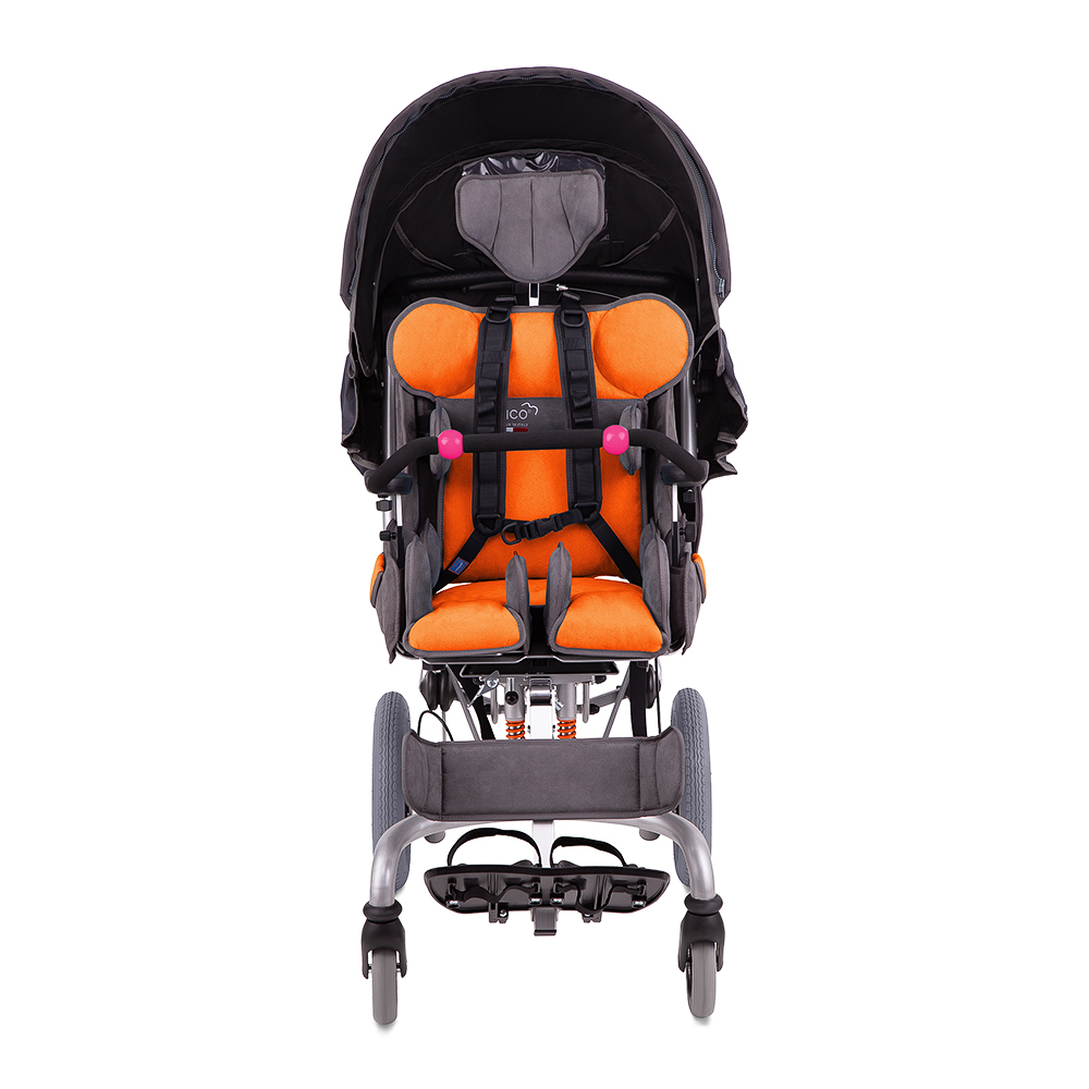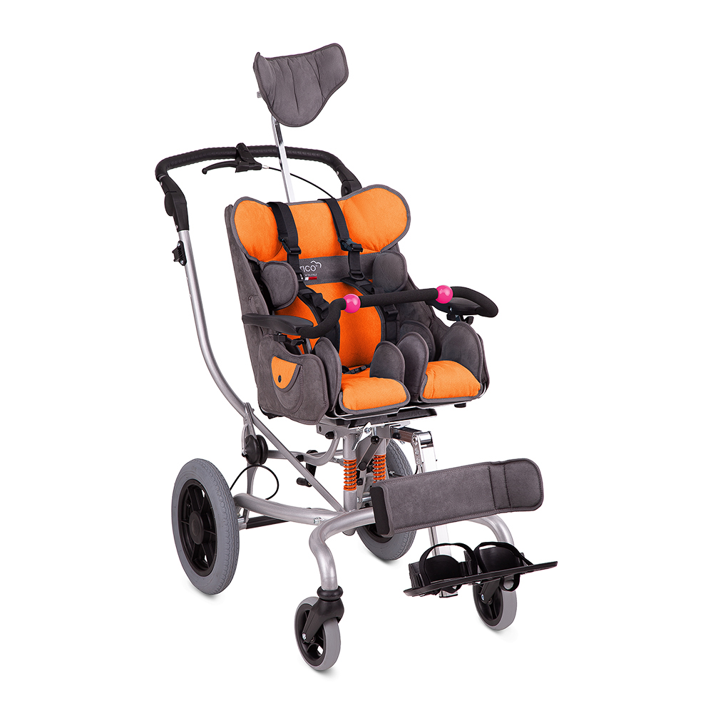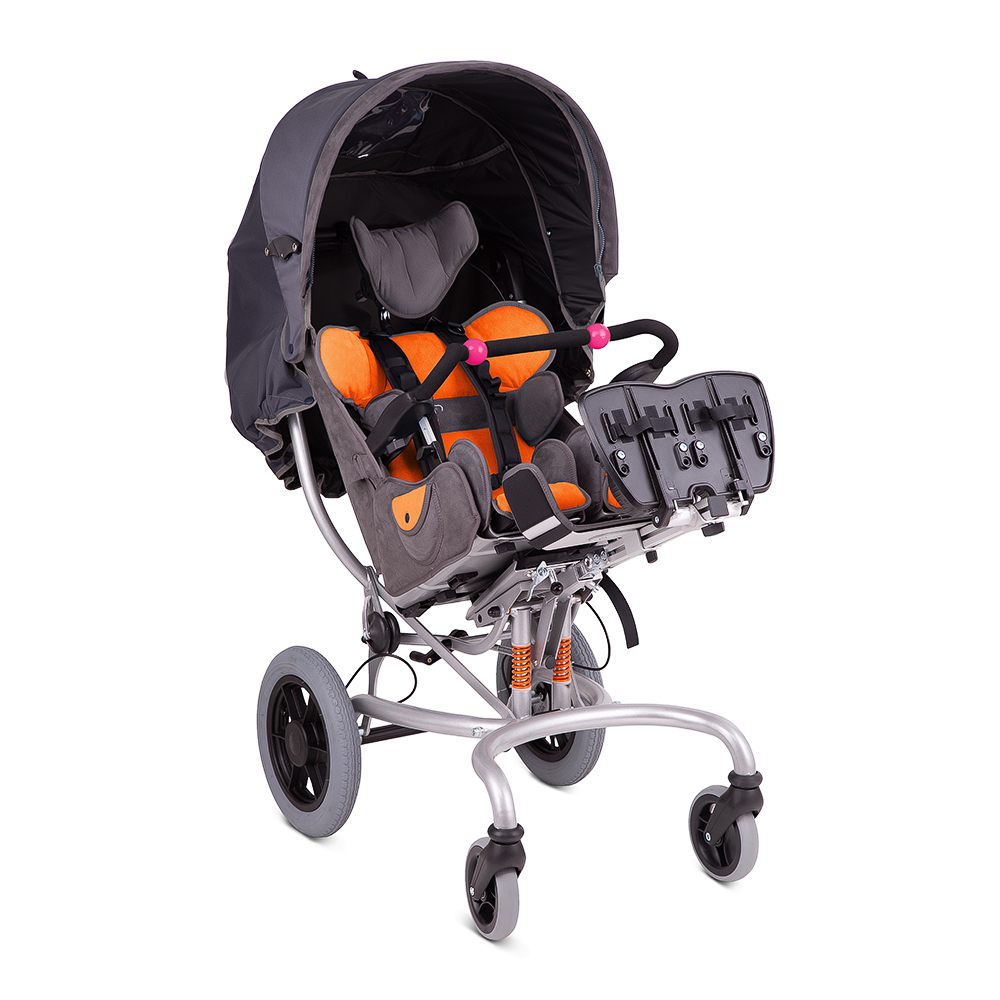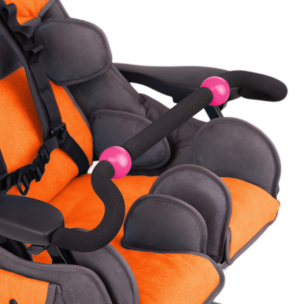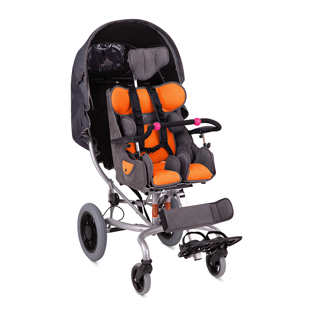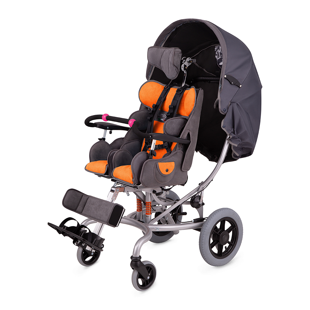 Максимальная поддержкаКоляска имеет подлокотники с регулировкой по высоте и углу наклона, а также настраиваемую моноподножку с сандалиями, фиксирующими положение ножек. Мягкая икроножная опора обеспечивает комфортное положение ножек. Боковые тазобедренные опоры раздельные и регулируются по углу наклона независимо друг от друга, чтобы обеспечить подходящее позиционирование малышу с различной степенью асимметрии таза.