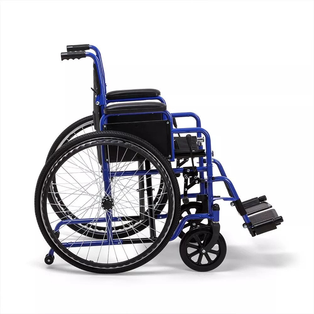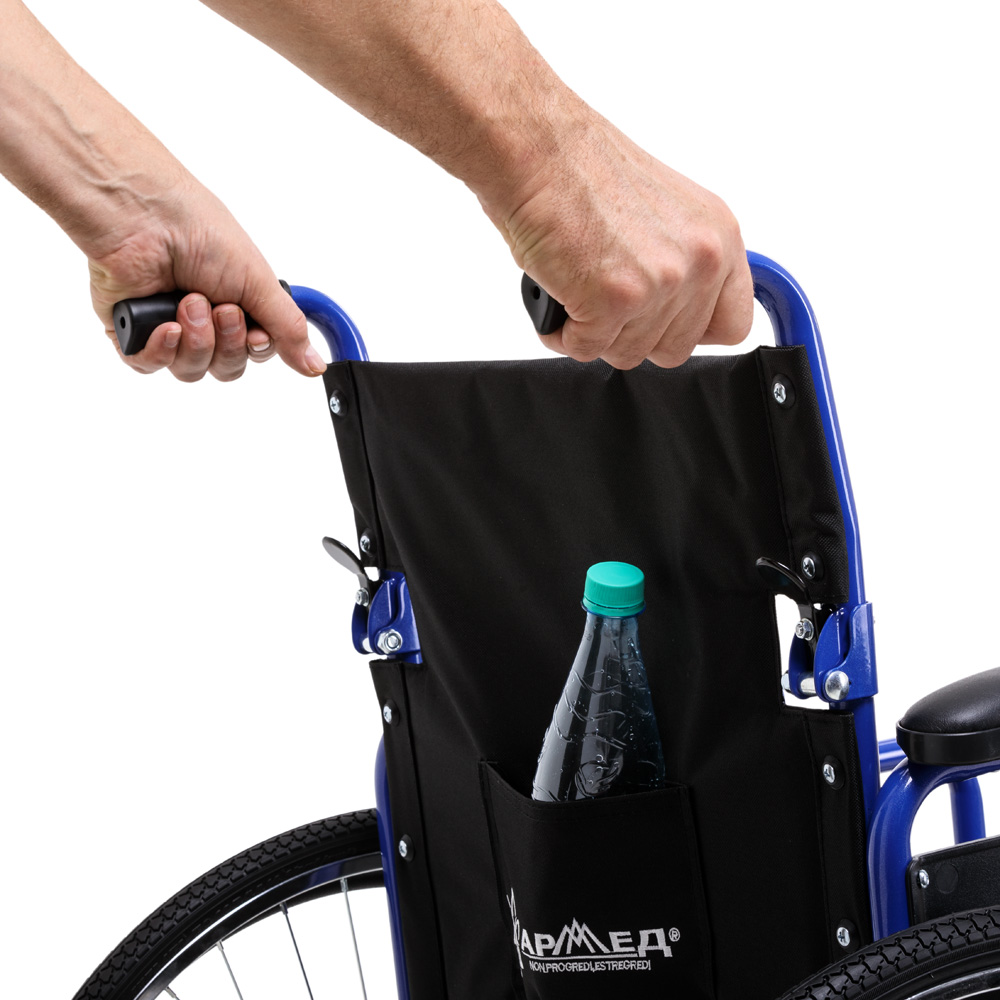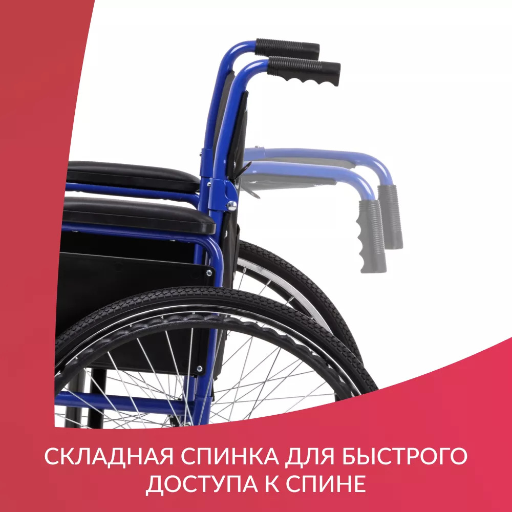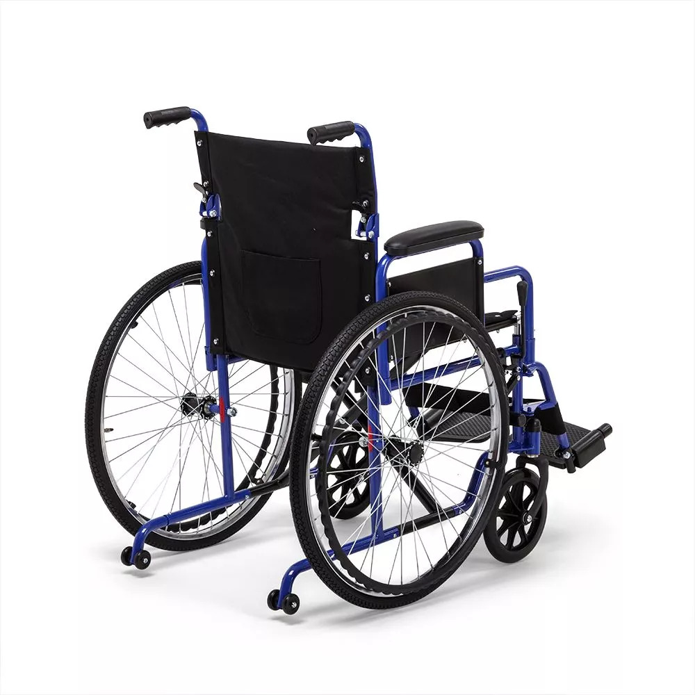 Складная рамаЧтобы сложить коляску, не требуется использовать какие-либо инструменты. В сложенном виде она удобна для переноски и не занимает много места при хранении.Мягко и уютноНаходиться в таком кресле удобно в течение всего дня, ведь каждая деталь кресла сделана с заботой. Сиденье и спинка инвалидной коляски очень мягкие и приятные телу, изготовлены из прочного водоотталкивающего материала. Ширина сиденья 46 см рассчитана на пользователей среднего телосложения.Удобство в мелочахПодлокотники могут сниматься для комфортного пересаживания в кресло или из него. Ступенчатая форма подлокотников дает возможность удобно расположиться у обеденного стола. Подножки поворотные и также съемные для легкого подъезда к мебели; имеется мягкая подставка под голени.Колесная базаЦельнолитые колеса обычно используются внутри помещений, но также подойдут для недолгих прогулок на свежем воздухе по ровному покрытию. Обе пары колес устойчивые и маневренные – коляской легко управлять и сидящему, и сопровождающему.БезопасностьНе переживайте о безопасности: каркас коляски изготовлен из прочной стали с защитным покрытием. Сидящий фиксируется в кресле регулируемыми ремнями, а встроенные антиопрокидыватели гарантируют устойчивость на неровных поверхностях. Коляска снабжена стояночными тормозами, которые прочно удерживают ее на время остановки.Характеристики