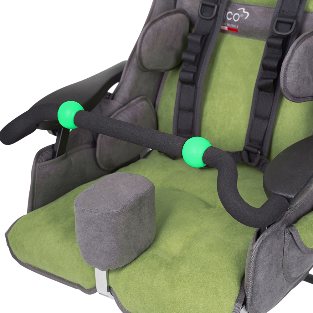 Рама Fuori NewВ базовой комплектации коляска устанавливается на прогулочную раму Fuori New, которая отлично подходит для использования как в помещении, так и на улице. Она легко проходит в дверные проемы, не занимает много места и позволяет близким вплотную подходить к ребенку.Настройка креслаУдобное сиденье легко снимается и может быть установлено на различные опорные рамы: Fuori, High Low, Dentro. В зависимости от особенностей малыша Вы можете легко настраивать глубину сиденья, высоту и угол наклона спинки. Если ребенок устал на прогулке, приведите кресло в горизонтальное положение - так маленький пользователь сможет расслабиться и поспать.КомфортабельностьКоляска имеет очень удобные подлокотники с регулировкой по высоте, а также сплошную настраиваемую подножку с фиксирующими ремешками и большой икроножной опорой.ФиксацияДля комфортного пребывания в течение всего дня предусмотрена встроенная противопролежневая подушка. Средний слой обшивки амортизирует непроизвольные движения ребенка, а внутренний слой оснащен пластичными боковыми пелотами. Функциональный подголовник Shapeable поддержит голову и шею. Он регулируется по высоте, глубине и углу наклона и совсем не мешает обзору. Мягкая дышащая обивка кресла снимается и легко чистится.БезопасностьДля надежной фиксации ребенка в кресле предусмотрен прочный пятиточечный ремень, а для дополнительной безопасности – мягкая ручка-ограничитель. Кроме боковой поддержки кресло обеспечит и поддержку таза: коляска оснащена боковыми тазовыми фиксаторами с независимой настройкой. Также имеется мягкий регулируемый абдуктор, который не даст ножкам перекрещиваться.Характеристики