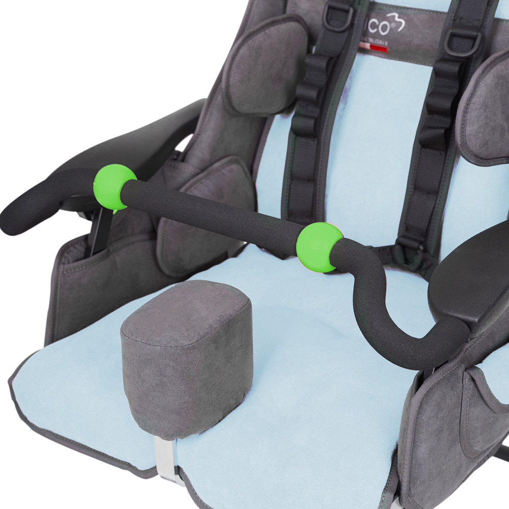 ФиксацияДля комфортного пребывания в течение всего дня предусмотрена встроенная противопролежневая подушка. Средний слой обшивки амортизирует непроизвольные движения ребенка, а внутренний слой оснащен пластичными боковыми пелотами. Функциональный подголовник Shapeable поддержит голову и шею. Он регулируется по высоте, глубине и углу наклона и совсем не мешает обзору. Мягкая дышащая обивка кресла снимается и легко чистится.
