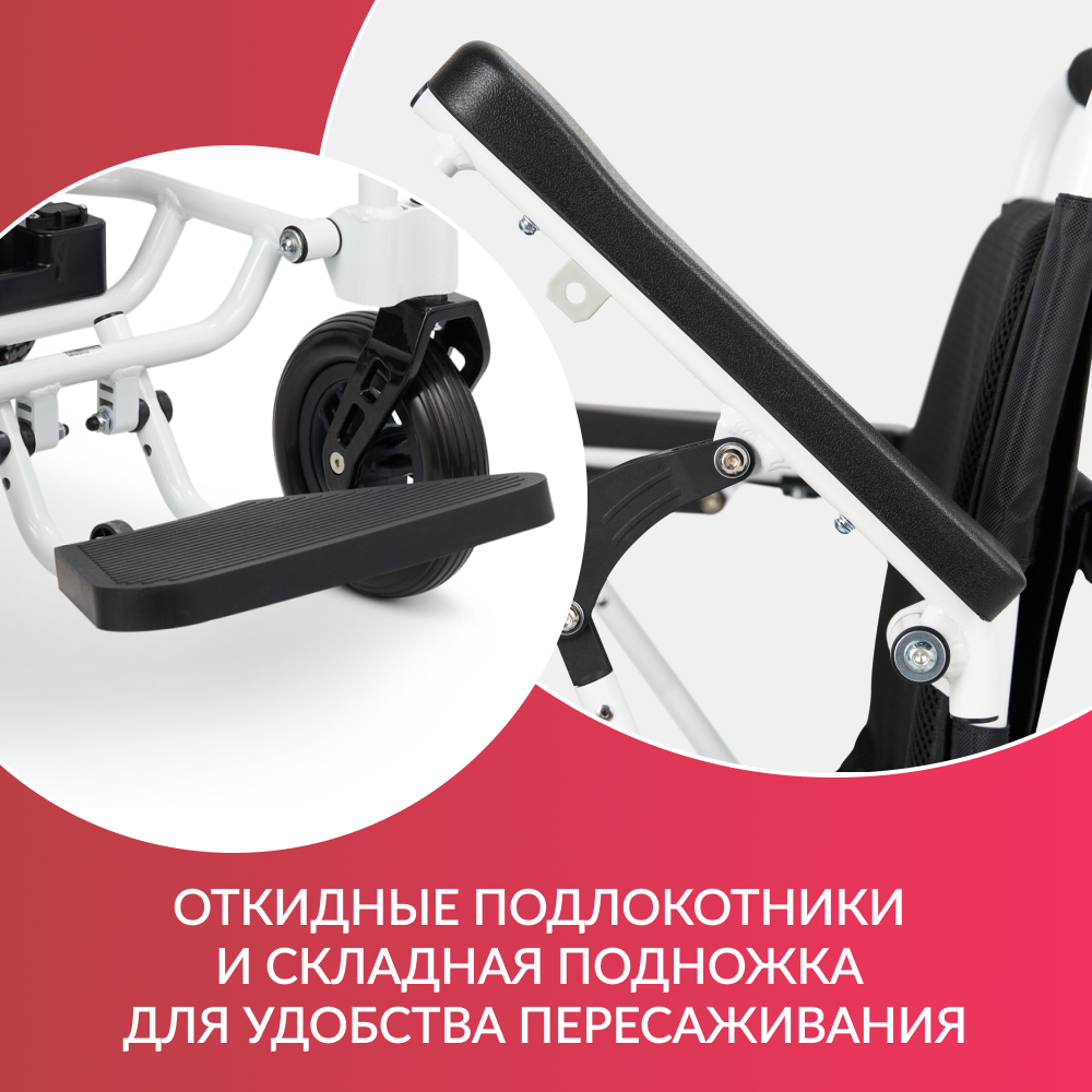Легкая и складная электроколяска JRWD602К идеально подходит для использования в различных помещениях, а также для путешествий. За счет малого веса и складной рамы коляску удобно перевозить в багажнике автомобиля и хранить дома.