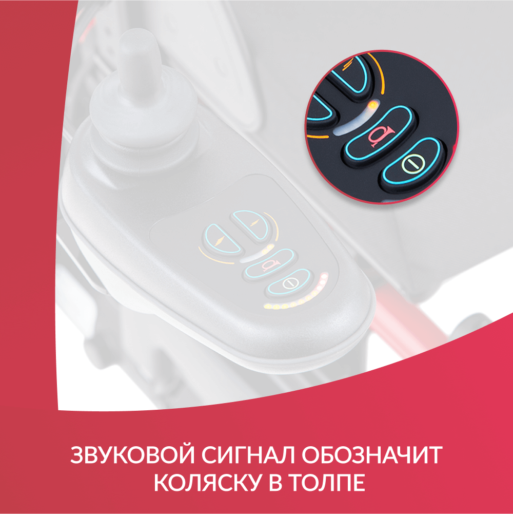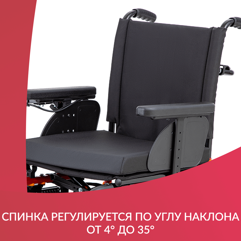 РегулировкиПодлокотники легко можно регулировать по ширине, высоте и глубине. Подножки для ног съемные, их можно поворачивать как внутрь, так и наружу. Благодаря этому обеспечивается удобный подъезд к мебели и заезд в небольшие помещения, такие как лифты. Наклон спинки можно настроить вручную в диапазоне 4-55°.Контроль управленияКоляска оснащена удобным многопозиционным контроллером с чувствительным джойстиком, который обеспечивает плавное управление и маневренность. Джойстик может быть установлен как под левую, так и под правую руку и отводится в сторону для удобного подъезда к столу.Характеристики