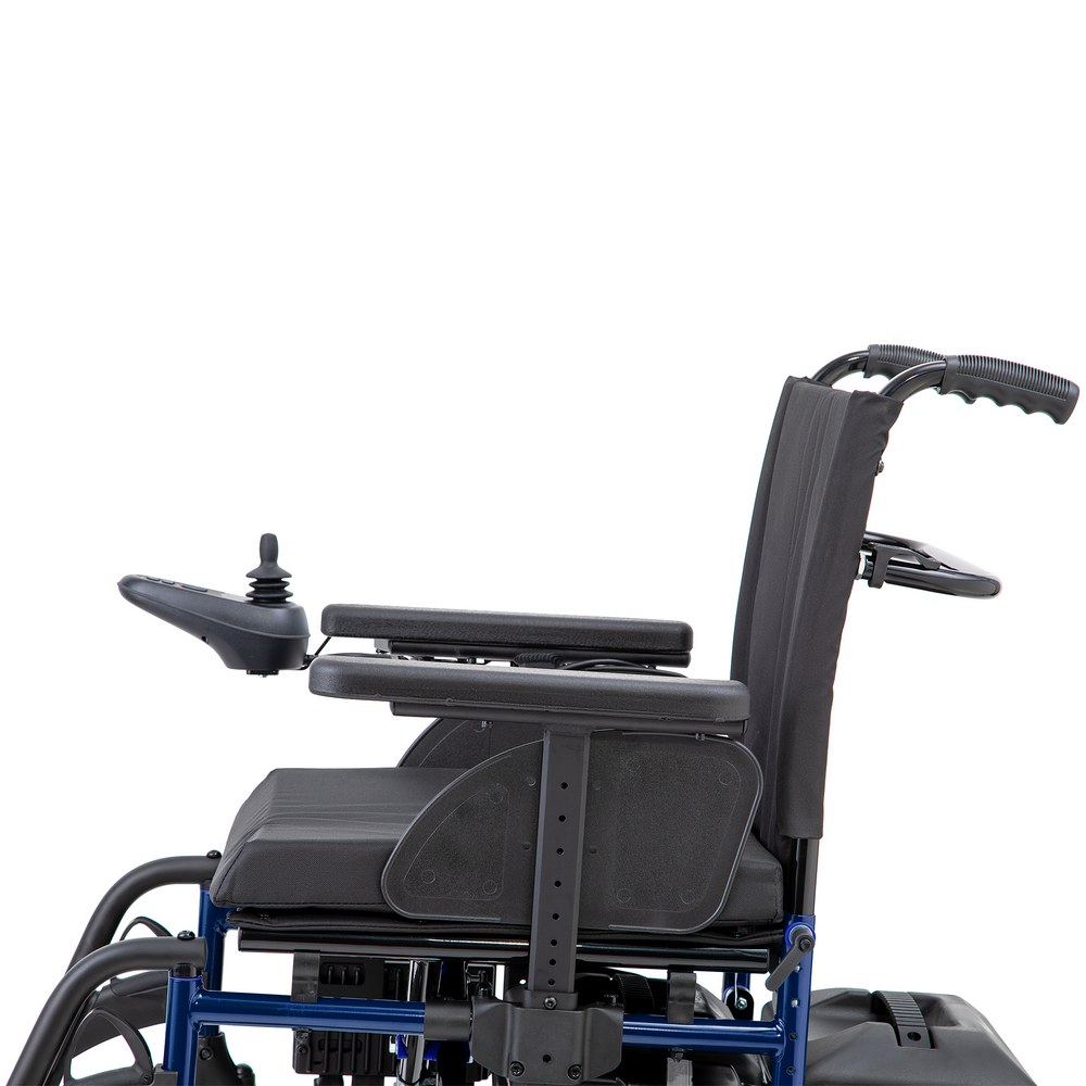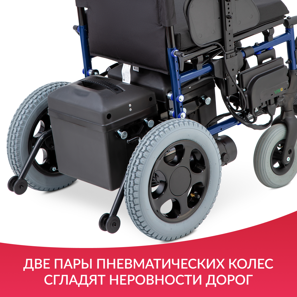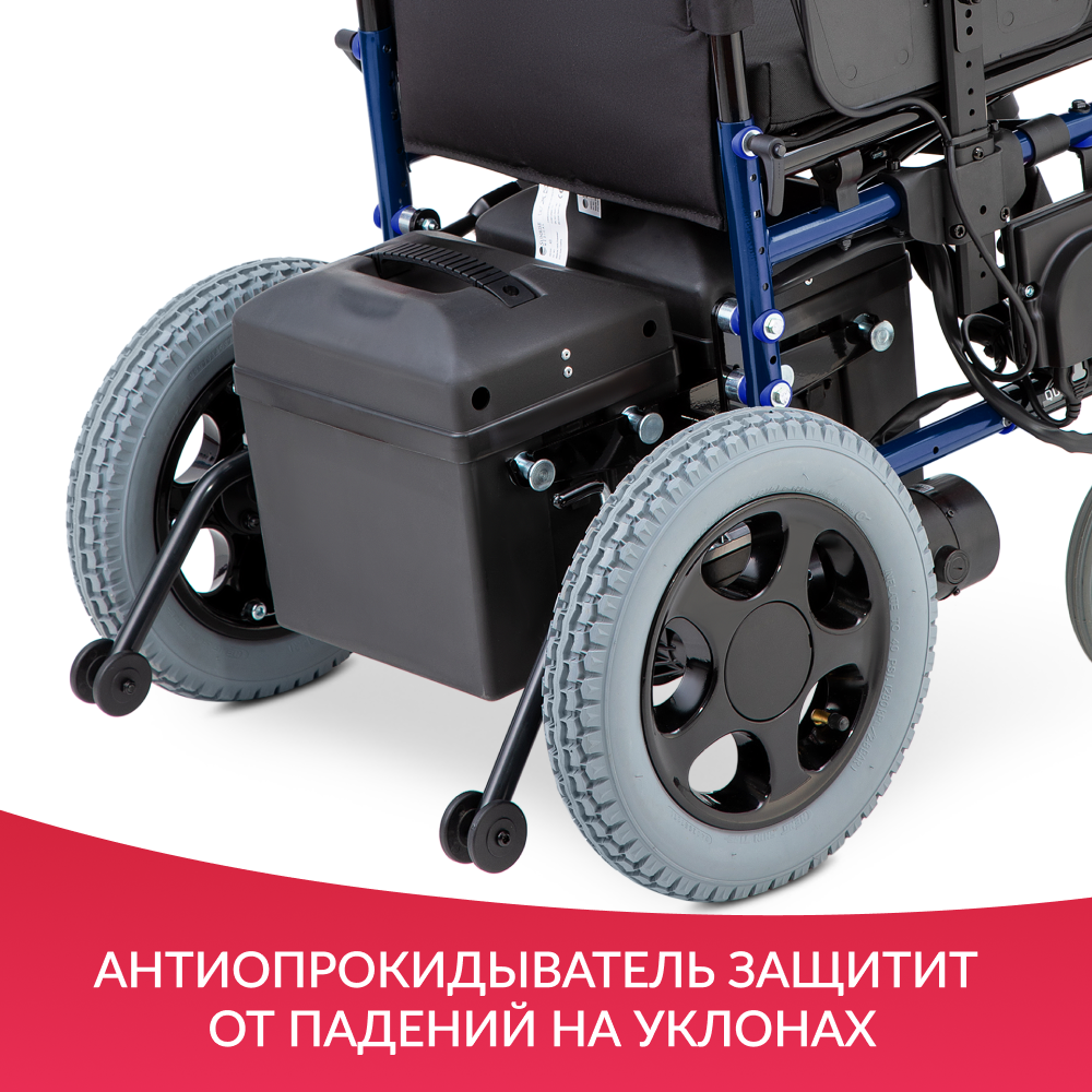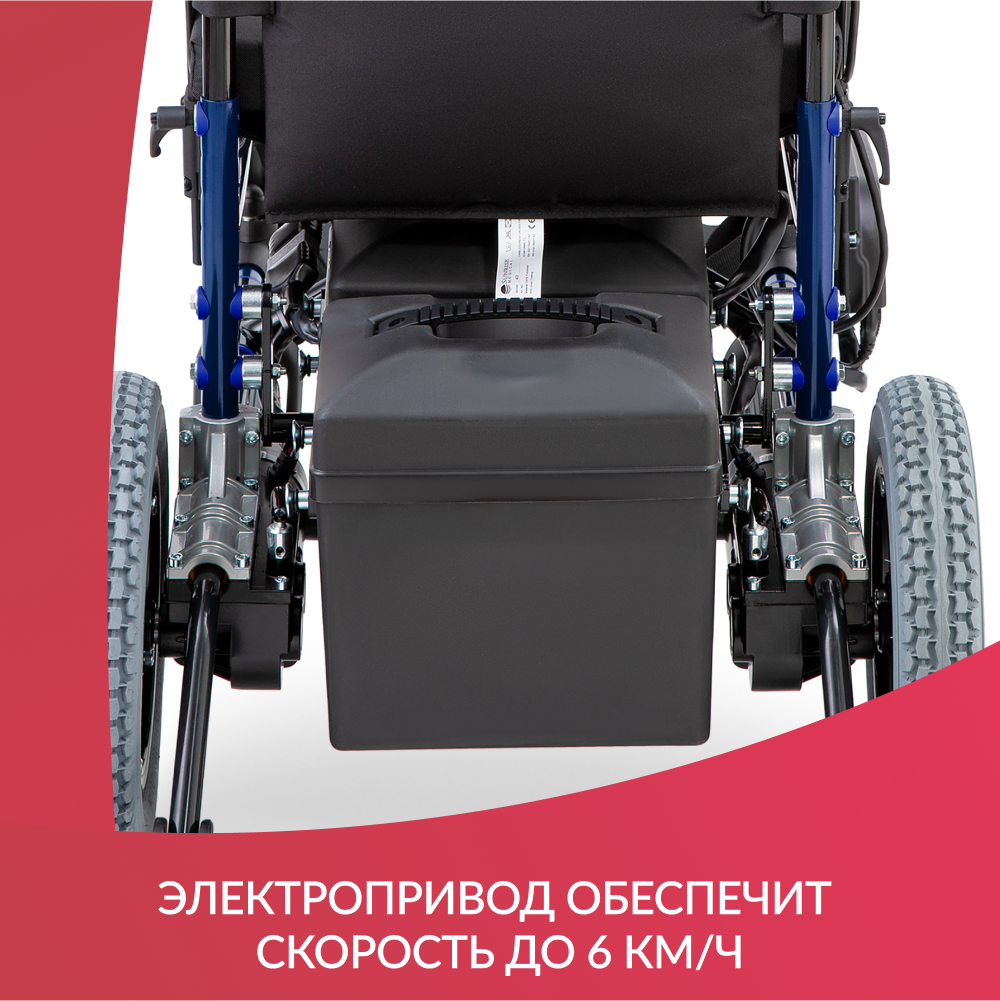 РегулировкиПодлокотники легко можно регулировать по ширине, высоте и глубине. Подножки для ног съемные, их можно поворачивать как внутрь, так и наружу. Благодаря этому обеспечивается удобный подъезд к мебели и заезд в небольшие помещения, такие как лифты. Наклон спинки можно настроить вручную в диапазоне 4-55°.Контроль управленияКоляска оснащена удобным многопозиционным контроллером с чувствительным джойстиком, который обеспечивает плавное управление и маневренность. Джойстик может быть установлен как под левую, так и под правую руку и отводится в сторону для удобного подъезда к столу.Характеристики