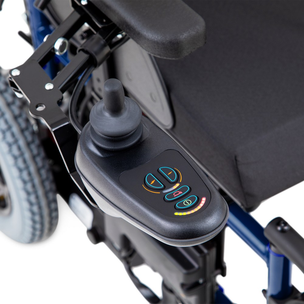 Электроколяска Sunrise Medical F35 - это удобное и функциональное средство передвижения для людей с нарушениями двигательной функции. Эта модель легко складывается и выполняет все базовые функции современного инвалидного кресла. Рама покрыта защитной синей краской, придающей коляске стильный внешний вид.