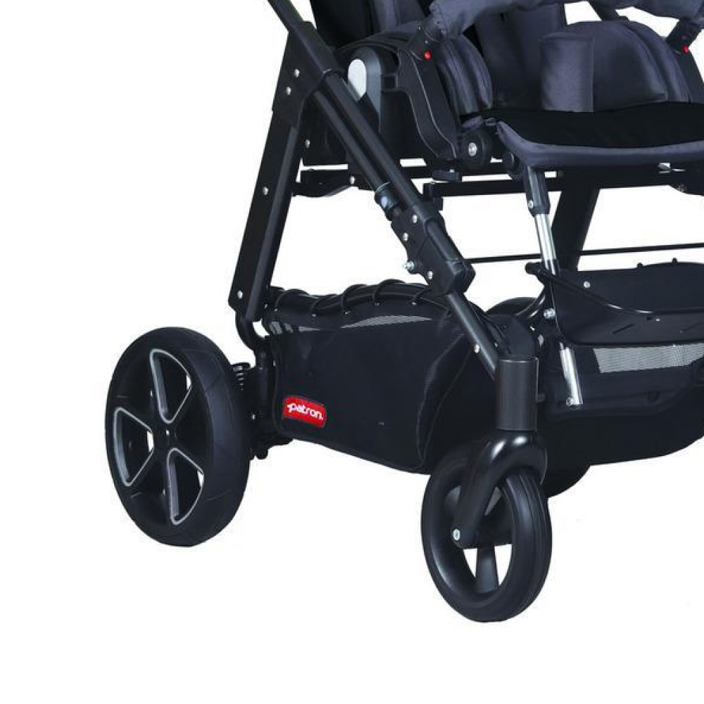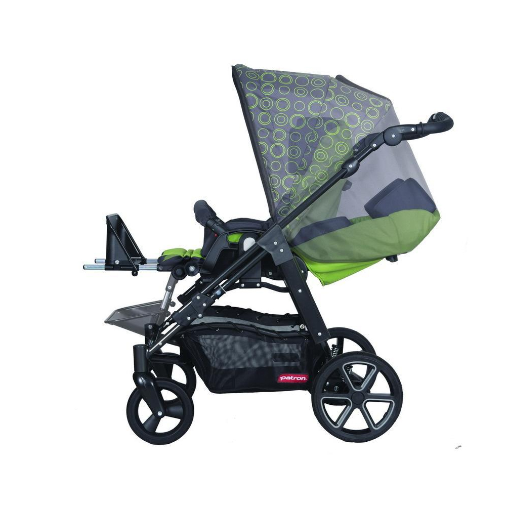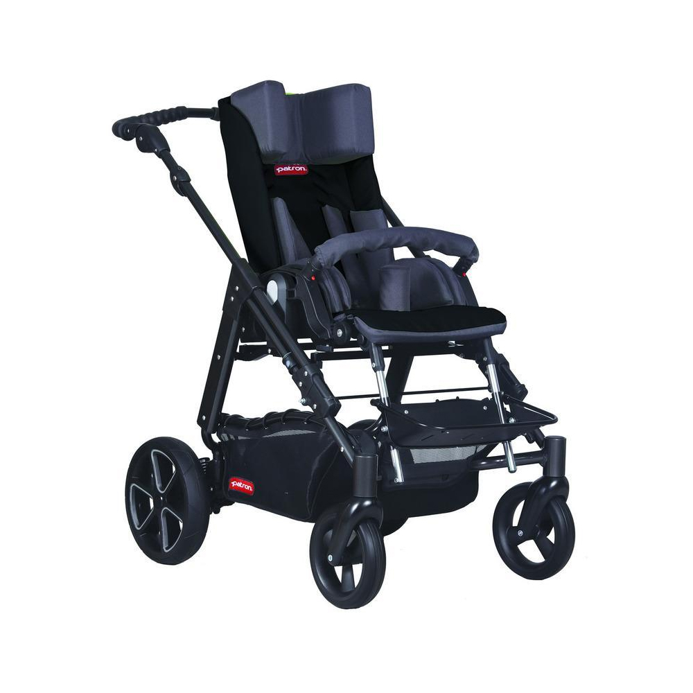 Коляска Patron Dixie Pllus имеет легкую алюминиевую раму выпускается в одном размере и полностью соответствует стандартам безопасности, гигиены и техническим требованиям ЕС. Patron Dixie Pllus предназначена для маленьких детей со средней степенью ДЦП. Интерфейс Clip-A-go позволяет значительно упростить использование и без усилий фиксировать поворотное сидение к раме. Полностью откидная спинка, а подножка регулируется по высоте и углу наклона. Дизайн коляски позволяет ее компактно сложить, ширина коляски - использовать ее в помещениях шириной от 60 см.