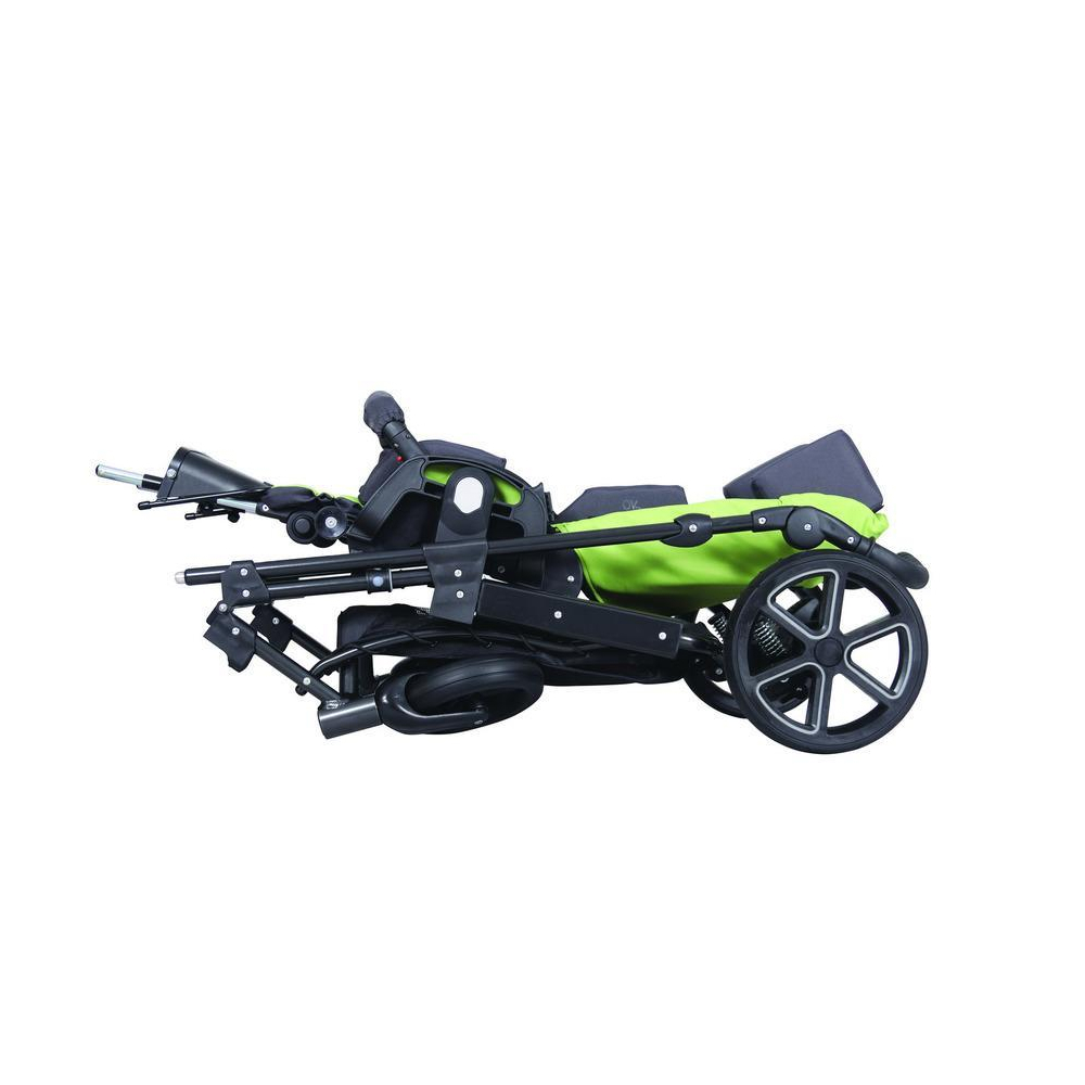 Важно отметитьЛегкая и прочная складная конструкция. Спинка с регулировкой наклона до положения лежа. Амортизация задних колес для плавного движения коляски. Ручка управления регулируется по углу наклона.