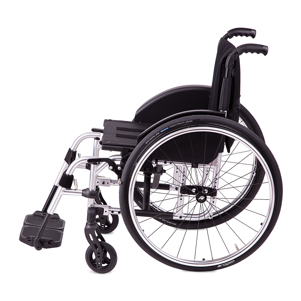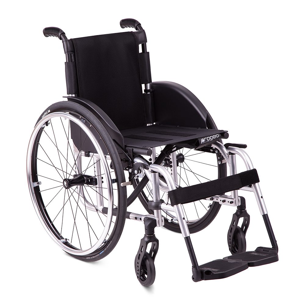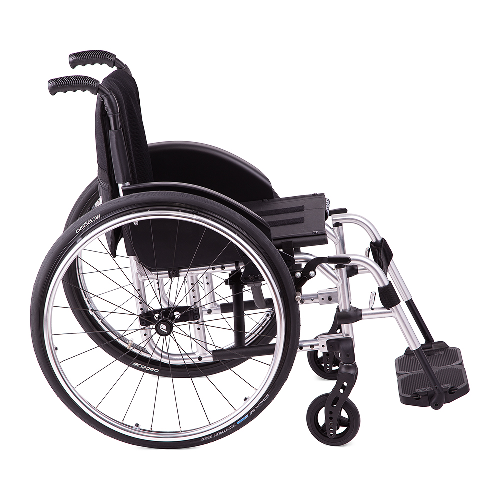 Progeo Exelle Vario – современная активная коляска с механическим приводом и настраиваемой задней рамой. Кресло адаптируется к особенностям сидящего, рама легко складывается для упрощения хранения и перевозки. Продуманные подножки делают коляску маневренной и удобной в быту. Рама покрыта защитной краской серебристого цвета, поэтому модель подойдет мужчинам и женщинам любого возраста. Благодаря небольшим габаритам коляска легко преодолеет узкие дверные проемы и лифты.