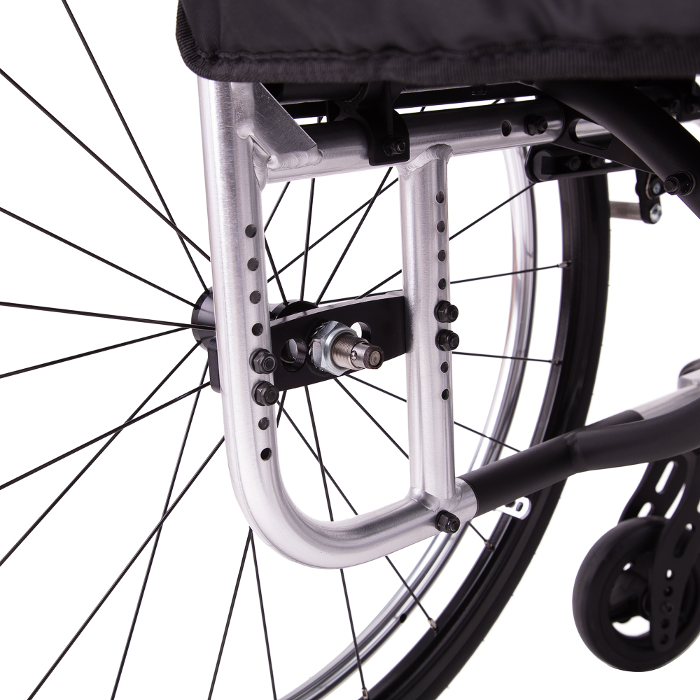 Регулировка задней рамыЗадняя рама с многоступенчатой системой регулировки позволяет найти идеальное положение кресла для конкретного пользователя. Задние колеса имеют многофункциональную систему настройки: Вы можете регулировать высоту спинки.