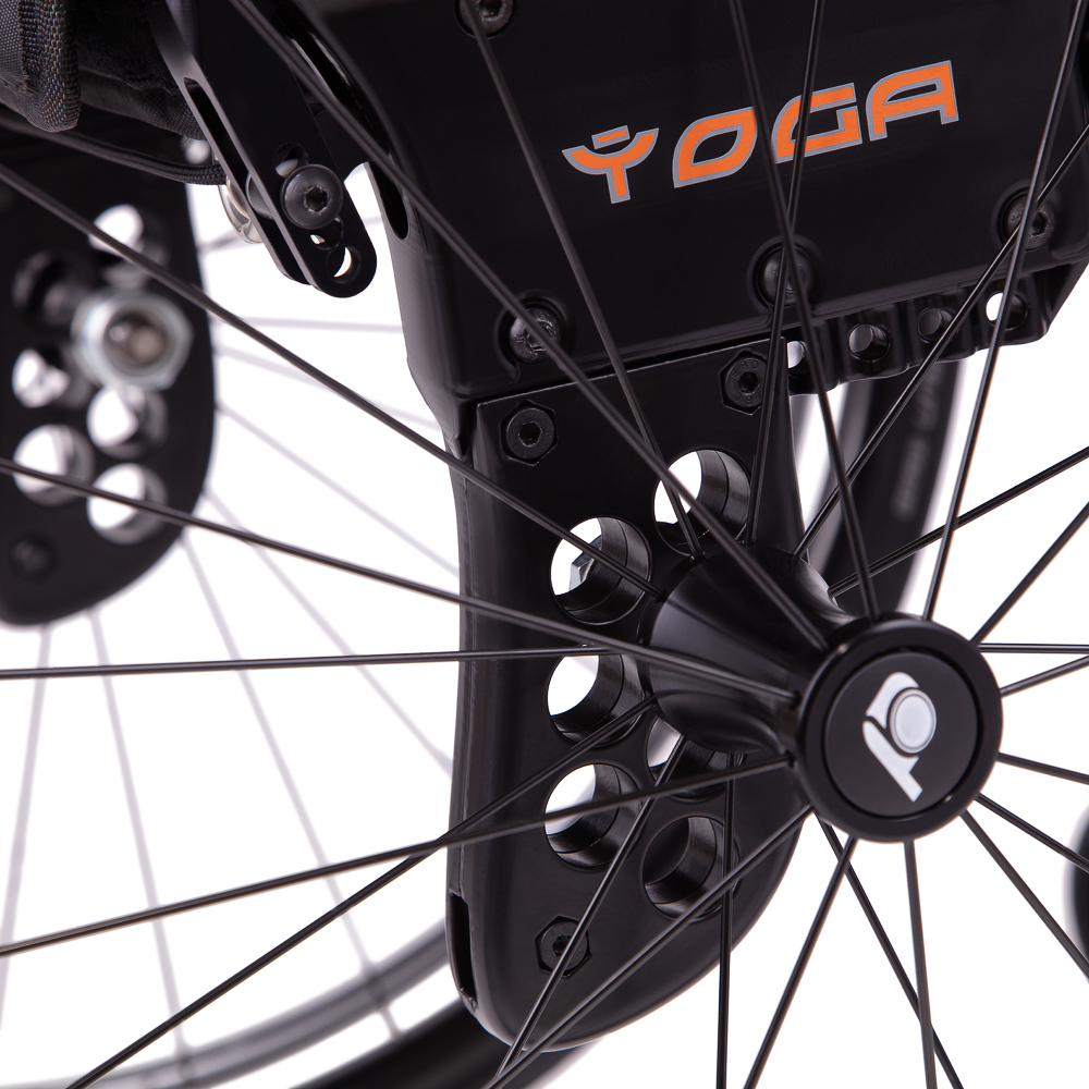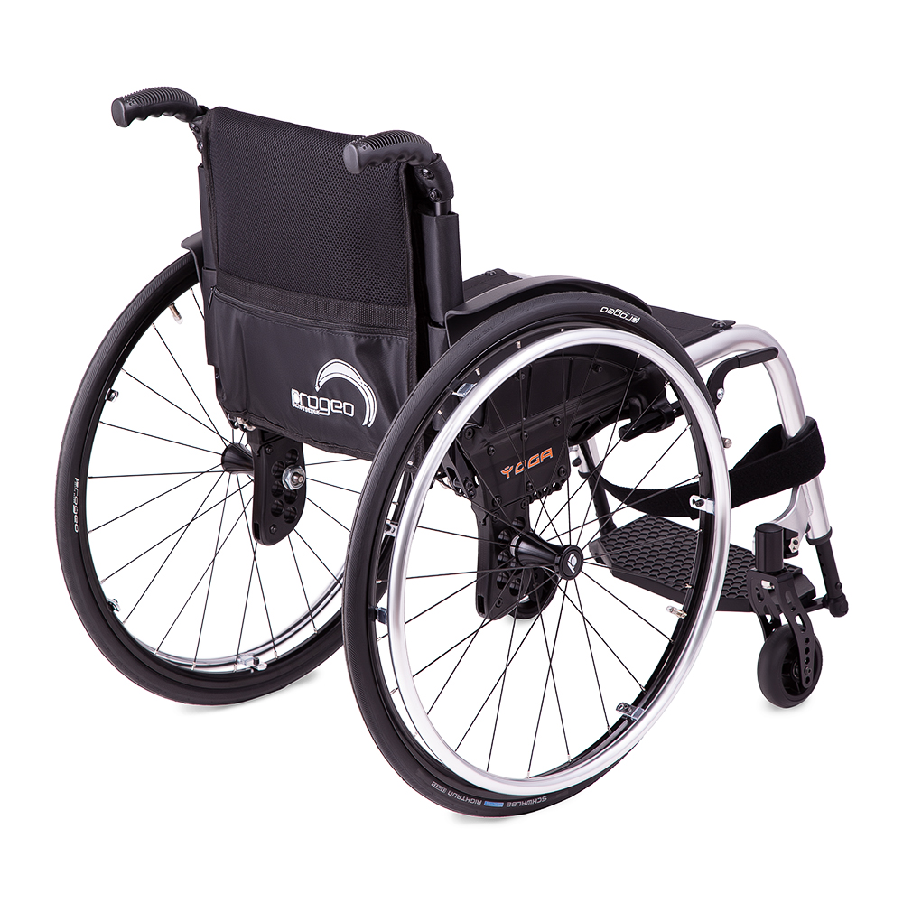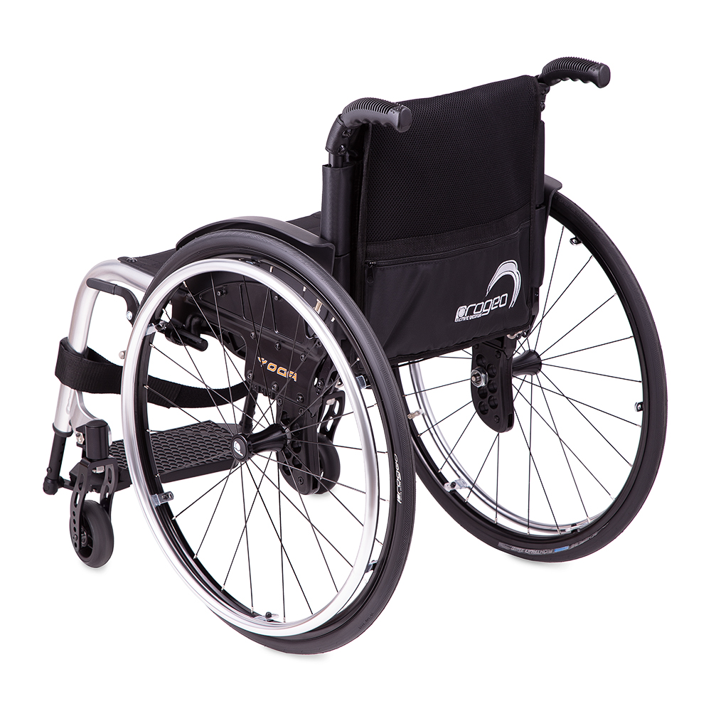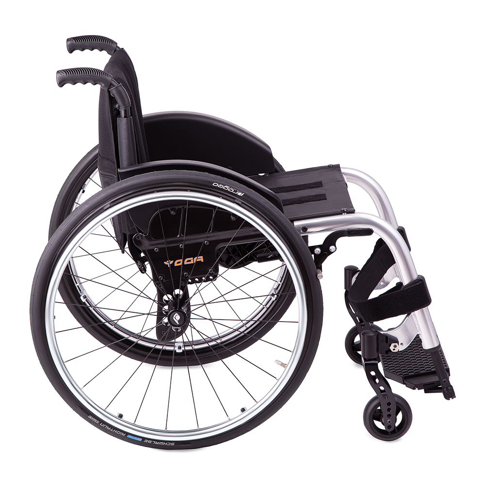Маневренные колесаКресло-коляска Progeo Yoga оснащается цельнолитыми передними колесами и задними пневматическими шинами. Передняя пара колес поворотная, задние колеса оснащены стояночными тормозами. Задние колеса быстро снимаются, что позволяет преодолевать узкие дверные проемы или лифты, а также упрощает перевозку и хранение.Характеристики
