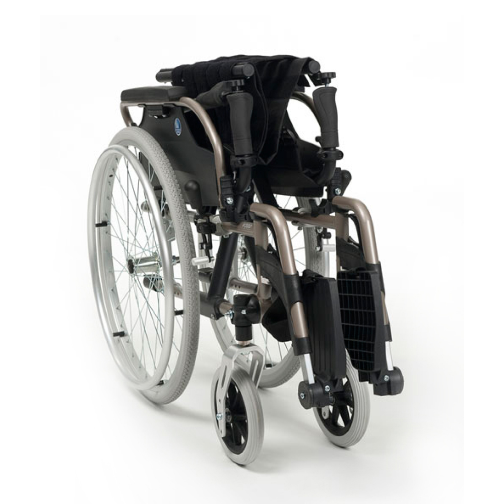 Регулируемая спинкаКоляска оснащена удобной спинкой с настройкой высоты и угла наклона до 30 градусов. Так пациент сможет в любое время принять удобное положение и расслабить спину. В основе спинки – система регулируемых ремней. Вы сможете настроить необходимый уровень натяжения в разных анатомических зонах.Складная рамаКаркас коляски изготовлен из прочного алюминиевого сплава. Рама легко складывается, упрощая хранение и транспортировку, а съемная перекладина для толкания не даст раме сложиться.КомфортабельностьСпинка и сиденье изготовлены из прочной ткани, которая легко снимается и чистится. Кроме наклонной спинки, кресло оснащено и регулируемым сиденьем. Можно менять его ширину, глубину и натяжение при помощи ремней. Подлокотники настраиваются по высоте, складываются и снимаются, упрощая усаживание в кресло и подъезд к столу. Подножки отводятся в стороны, регулируются по длине и снимаются. Пользователю будет проще вставать с кресла и пользоваться мебелью. Чтобы не потерять ключи или телефон, можно воспользоваться маленьким карманом под сиденьем.КолесаВы можете выбрать модель с задними колесами на литых и пневматических шинах. Последние идеально подходят для передвижения в городских условиях, так как способны сглаживать неровности покрытий. Колеса быстросъемные и могут регулироваться по высоте при помощи адаптеров. Так меняется положение сиденья и ходовые качества коляски. Надежную остановку обеспечат стояночные тормоза с рычагами по обе стороны кресла.Характеристики