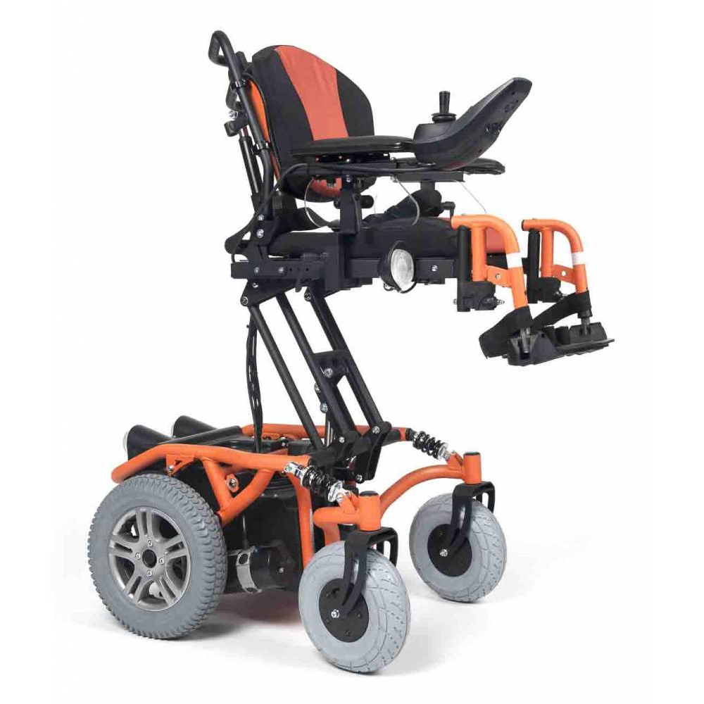 Больше, чем коляскаГлавная отличительная возможность данного кресла – встроенный лифт, который позволит ребенку дотягиваться до верхних полок шкафа и пользоваться обычными предметами мебели наравне со сверстниками и даже взрослыми. Надежный электрический привод плавно поднимает сиденье на высоту 30 см и также плавно опускает. Общаться на одном уровне с друзьями, садиться за любой стол и брать книжки в библиотеке – Ваш ребенок почувствует новое качество жизни.Простое управлениеКресло-коляска приводится в движение как сопровождающим, так и мощным электроприводом. Простой и понятный пульт-джойстик может быть установлен на любую сторону кресла, а также его можно регулировать по положению и высоте. Установите пульт в удобном для ребенка месте, и он сможет передвигаться сам! Ресурсов аккумулятора хватит на 30 км движения без подзарядки, которая осуществляется в любом месте с розеткой. Двигатель развивает скорость до 10 км/ч.КомфортабельностьКресло-коляска надежно фиксирует маленького пользователя в правильном положении и исключает появление пролежней. Спинка может принимать любой удобный угол наклона и стабилизовать положение тела. Само сиденье регулируется по глубине и ширине. Подвижные элементы - подлокотники и подножки - способны полностью подстраиваться под ребенка: они откидываются, полностью снимаются и регулируются по высоте, а подлокотники еще и по ширине. Есть возможность дополнительно установить подголовник, пелоты, абдуктор, подушки для сиденья, столик и дополнительный ремень на бедра.Передвижение по любым покрытиямКоляска превосходно себя показывает на любых покрытиях. Дома или на открытом воздухе, литые или пневматические профильные колеса обеспечивают полное сцепление с поверхностью. Передвижение даже по неровным поверхностям не принесет дискомфорта – каждое из колес оснащено амортизатором, поглощающим дефекты покрытия. Кресло оснащено независимой подвеской и имеет дорожный просвет в 8 см.БезопасностьПроизводитель исключил любые риски, связанные с использованием коляски. Материал обивки обладает свойством самогашения, что может уберечь малыша от несчастного случая. Антиопрокидыватели гарантируют безопасность во время спуска/подъема на наклонных поверхностях. Для фиксации ребенка в кресле предусмотрен поясной ремень на застежке, а безопасное передвижение по слабоосвещенным участкам обеспечит переднее и заднее светодиодное освещение. Все как в настоящем автомобиле!Характеристики