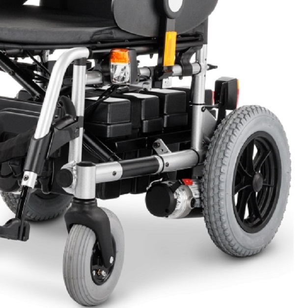 Отличительной особенностью комплектации Premium является спинка с углом наклона до 30° и подножки с регулировкой угла подъема. Передние и задние шины пневматические, обеспечивают комфортное движение по неровностямУдобство рук и ногКресло оснащено легкосъемными независимыми подножками и подлокотниками с возможностью плавного изменения высоты опоры для ног и рук соответственно. Подножки можно дополнительно регулировать по углу наклона для отдыха и комфорта ног.Умный пультКоляска имеет плавную регулировку положения пульта на подлокотнике. Джойстик можно расположить и с левой, и с правой стороны. Конструкция пульта управления ударопрочная и пыле-влагозащищенная, с устройством управления ничего не случится даже в непогоду. Пользователь всегда увидит низкий уровень заряда аккумулятора.Индивидуальные настройкиКонструкция коляски предусматривает возможность использования людьми различной комплектации. Дополнительные мягкие подушечки позволяют уменьшить ширину сиденья до 37 см, что идеально подойдёт подросткам и миниатюрным взрослым. Изменение ширины сиденья от 43 до 55 см обеспечивает самому пользователю максимальный комфорт, к тому же это удобно зимой, в сезон объемных пуховиков.Запас ходаОдного заряда аккумулятора хватит на 30 км пути с максимальной скоростью 6км/ч. Две батареи с гелевым электролитом мощностью 45Ah расположены в индивидуальных защитных боксах, защищены от перегрузок и замыканий. Данный тип аккумуляторов абсолютно безопасен при использовании и заряде в закрытых помещениях. Зарядное устройство в комплекте.Электронный контроль тормозовУмная электроника обеспечивает постоянный контроль безопасности при движении и во время остановки. Коляска снабжена энергонезависимой тормозной системой, а в случае ее неисправности движение коляски блокируется. Контроль состояния тормозной системы производится электроникой постоянно.Складная рамаСкладная рама и съемные аккумуляторы позволяют компактно сложить коляску для последующей перевозки или хранения. Спинка коляски съемная и оборудована ремнями натяжения, с помощью которых можно регулировать жесткость спинки и по углу наклона.Маневренность и безопасностьПлавное движение по неровностям обеспечивается литыми проколозащищенными шинами. Передняя пара колес расширена в осевой зоне диска, что защищает подшипники от попадания грязи и песка. Коляска с легкостью преодолеет неровные дорожки и уклоны: съемные антиопрокидыватели не дадут креслу завалиться назад. Светоотражатели полезны при движении в темноте.Характеристики
