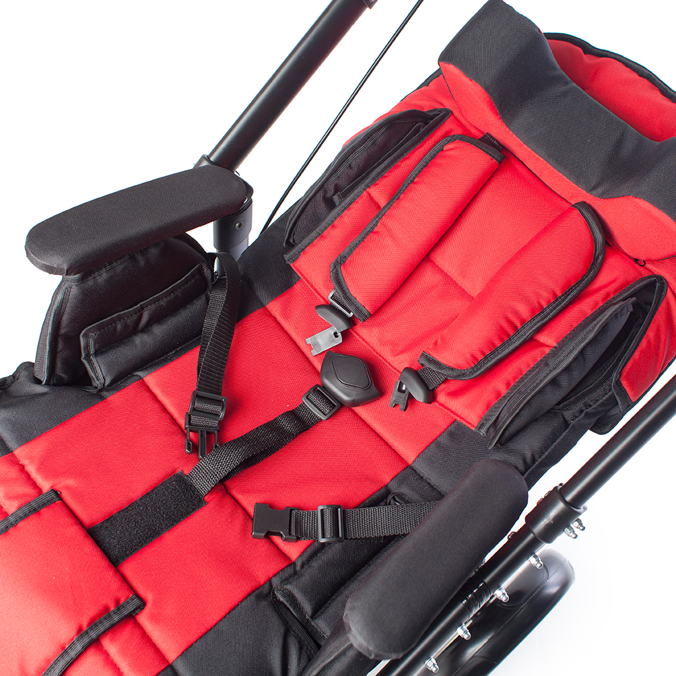 Базовая комплектацияКресло-коляска, капюшон от солнца, мягкий абдуктор, подголовник, боковые поддержки, ремень безопасность, защитный барьер