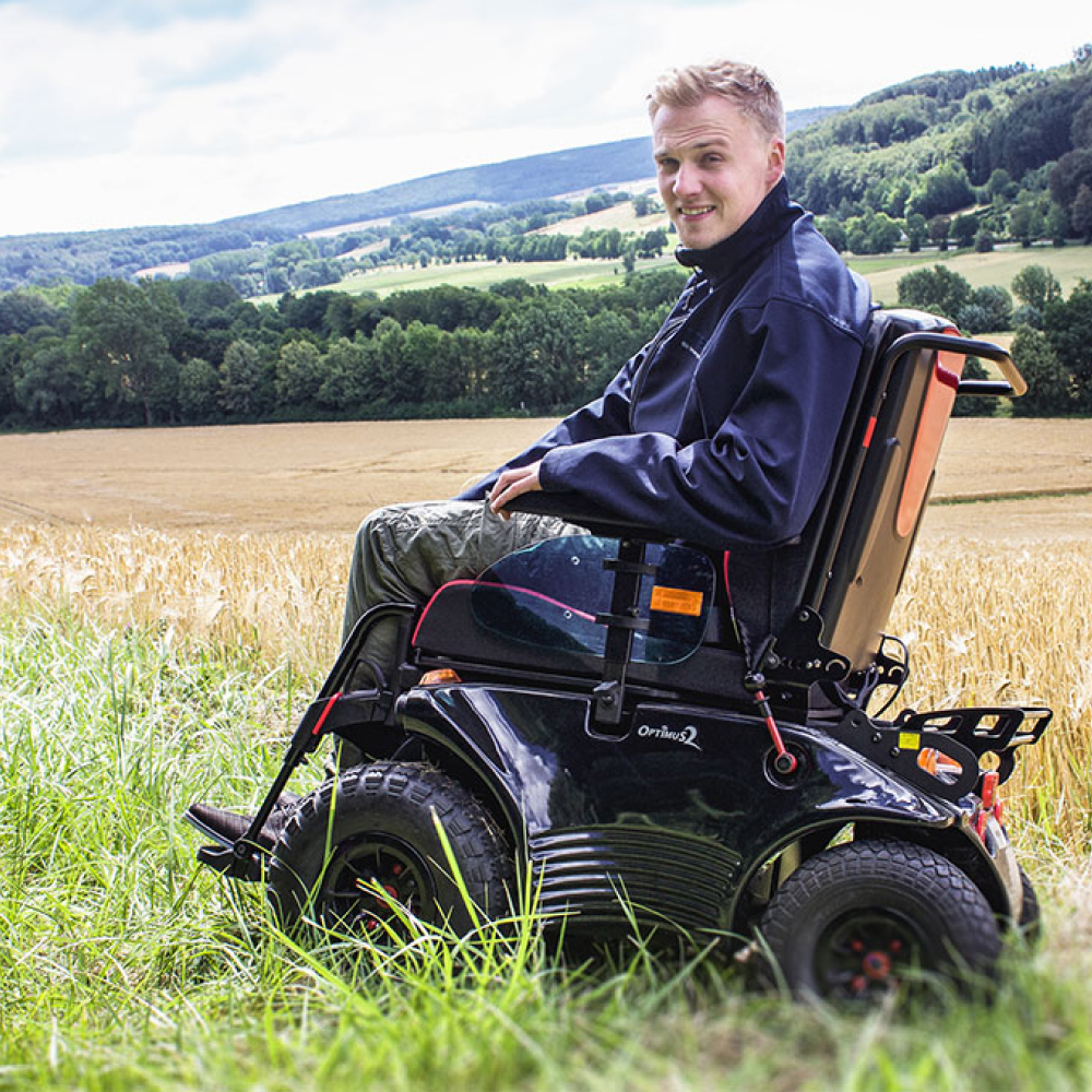 Электрическое кресло-коляска Meyra OPTIMUS 2 - настоящий внедорожник среди инвалидных кресел. Коляска предназначена для езды по дороге с плохим покрытием или по грунту, в местах, где предстоит преодолевать множество бордюров, а также для безопасной езды по сложным дорогам с крутыми подъемами. Превосходное немецкое качество, грузоподъемность до 120 кг, невероятные мощность и запас хода – только малая часть достоинств модели.Контроль управленияУправление основными функциями, выбор направления и скорости движения осуществляется с помощью многофункционального контроллера R-NET с LED-дисплеем. Длина, высота и положение пульта легко регулируется, также его можно отводить в сторону для удобного подъезда к столу. Пульт имеет USB-выход для зарядки гаджетов во время прогулки.Технология R-NETНа коляске Meyra OPTIMUS 2 установлена запатентованная система поворота колес с быстрой реакцией на управление, которая обеспечивает непревзойденную маневренность и мгновенный ответ устройства на действия. Благодаря данной возможности коляска может разворачиваться в ограниченном пространстве, а также поворачивать по минимальному радиусу.КомфортКоляска оснащена технологичным сиденьем Recaro M глубиной 48 см, выполненным из дышащей ткани. Угол наклона сиденья регулируется электроприводом. Спинка имеет высоту 64 см и регулируется по углу наклона при помощи специального механизма. Подлокотники настраиваются по высоте и глубине, что позволит пользователю подъезжать к обеденному столу вплотную. Раздельные подножки можно регулировать по углу наклона и снимать, упрощая вставание и пользование мебелью. Данная комплектация предусматривает наличие багажника.Отличная проходимостьОптимизированная геометрия шасси обеспечивает наилучшие характеристики управляемости, а колеса с брызговиками и специальными пневматическими шинами позволяют совершать длинные поездки по дорогам любого качества. Барабанный тормоз обеспечит надежную остановку и предотвратит откат коляски на уклонах.Невероятная дальность ходаДанная модель оснащена полной амортизацией, которая нивелирует любую вибрацию и гарантирует комфортную и плавную езду без опасных рывков. Благодаря мощной батарее коляска может преодолевать расстояния до 70 км без подзарядки с максимальной скоростью 6 км/ч.Характеристики