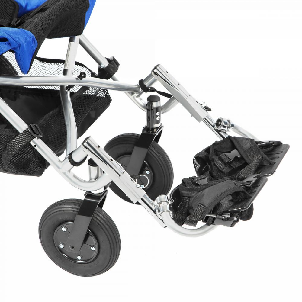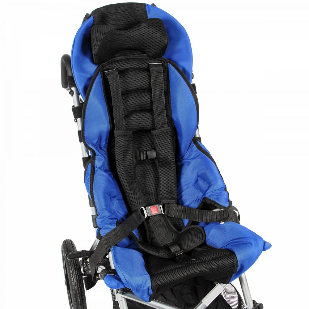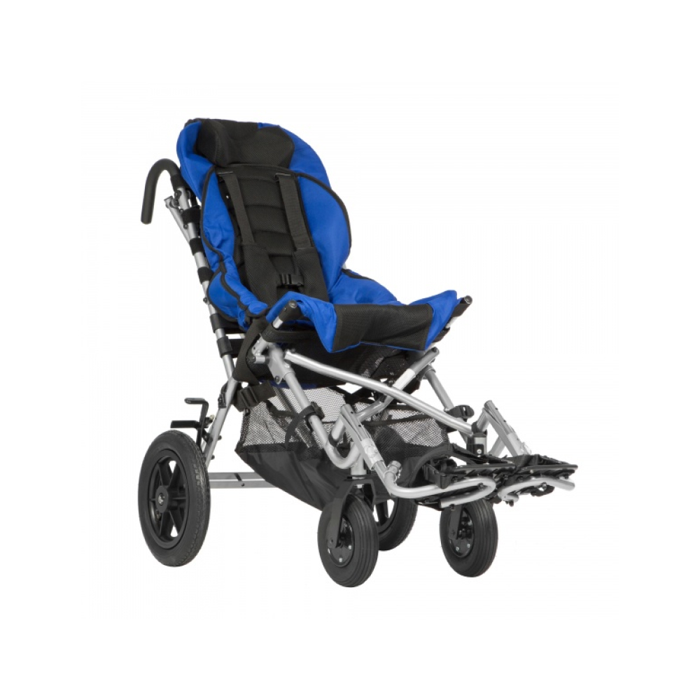 Складная рамаПроизводитель подумал о возможности путешествовать с особенным ребенком: рама коляски складывается по типу «трость». В сложенном виде коляска занимает минимум места при хранении и транспортировке, легко помещаясь в багажник автомобиля.Регулировка положенияСиденье кресла имеет фиксированный угол наклона 30°, который снимает нагрузку с позвоночника. При помощи специальных инструментов положение спинки можно регулировать в зависимости от образа времяпровождения малыша и наклонять от 85 до 95°.КомфортабельностьСтепень натяжения спинки можно регулировать с помощью системы натяжения ремней. Так положение спины всегда будет стабильным и безопасным. Голову фиксирует удобный съемный подголовник, не мешающий обзору и регулируемый по высоте в 5 положениях. Для удобства ног и посадки в коляску предусмотрены откидные съемные подножки, настраиваемые по длине; для стоп есть фиксирующие ремешки. Сиденье настраивается по глубине, его обивка и обивка спинка снимается и легко чистится.Маневренные колесаКоляска оснащена пневматическими колесами для проходимости на любых дорожных поверхностях. Задняя пара быстросъемная, что позволяет еще больше упростить перевозку и хранение. За безопасность стоянки и посадки в кресло отвечают стояночные тормоза, а передний блокиратор обезопасит ребенка при движении по снегу и сложным поверхностям.Характеристики