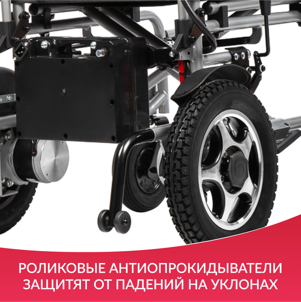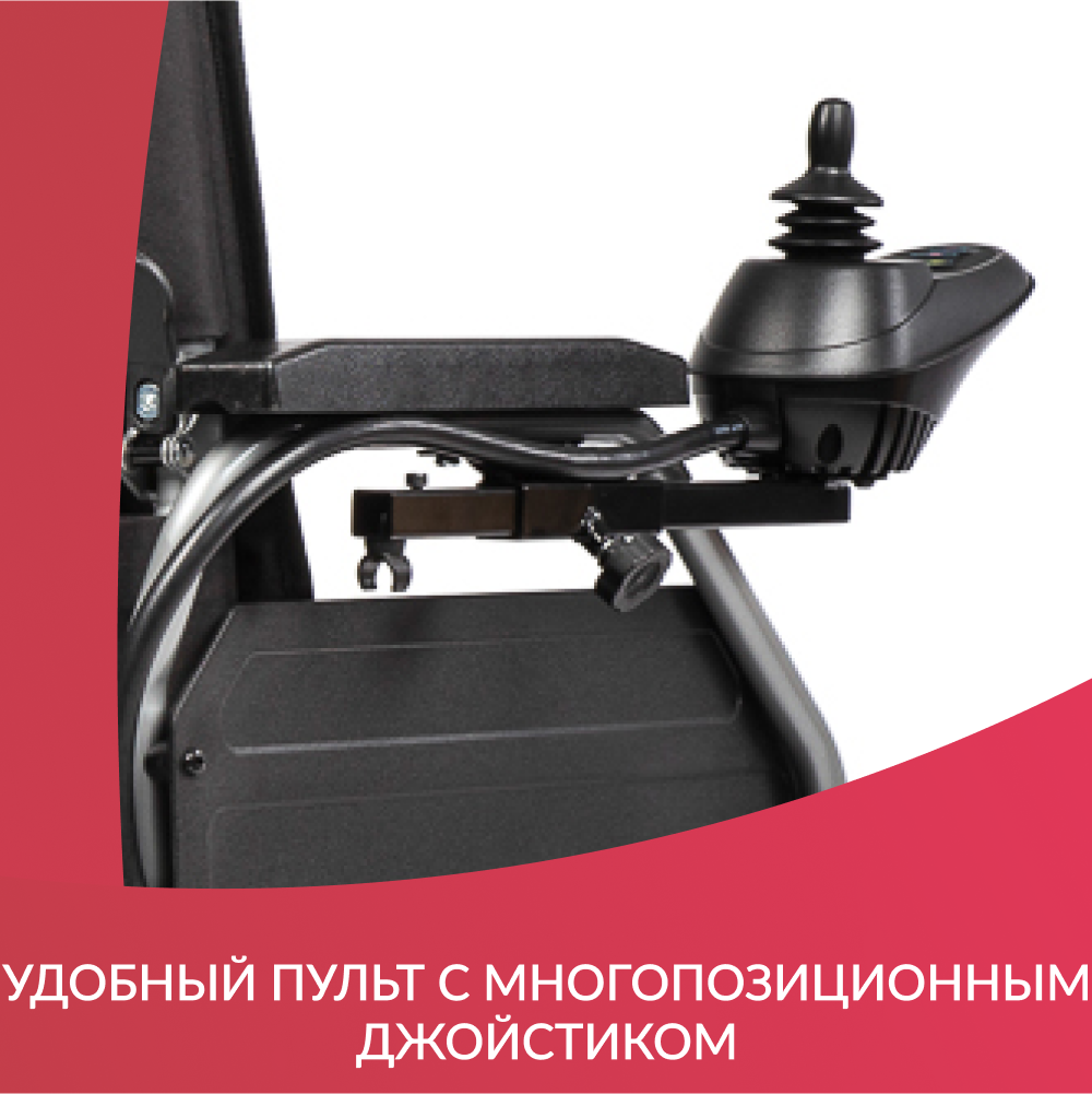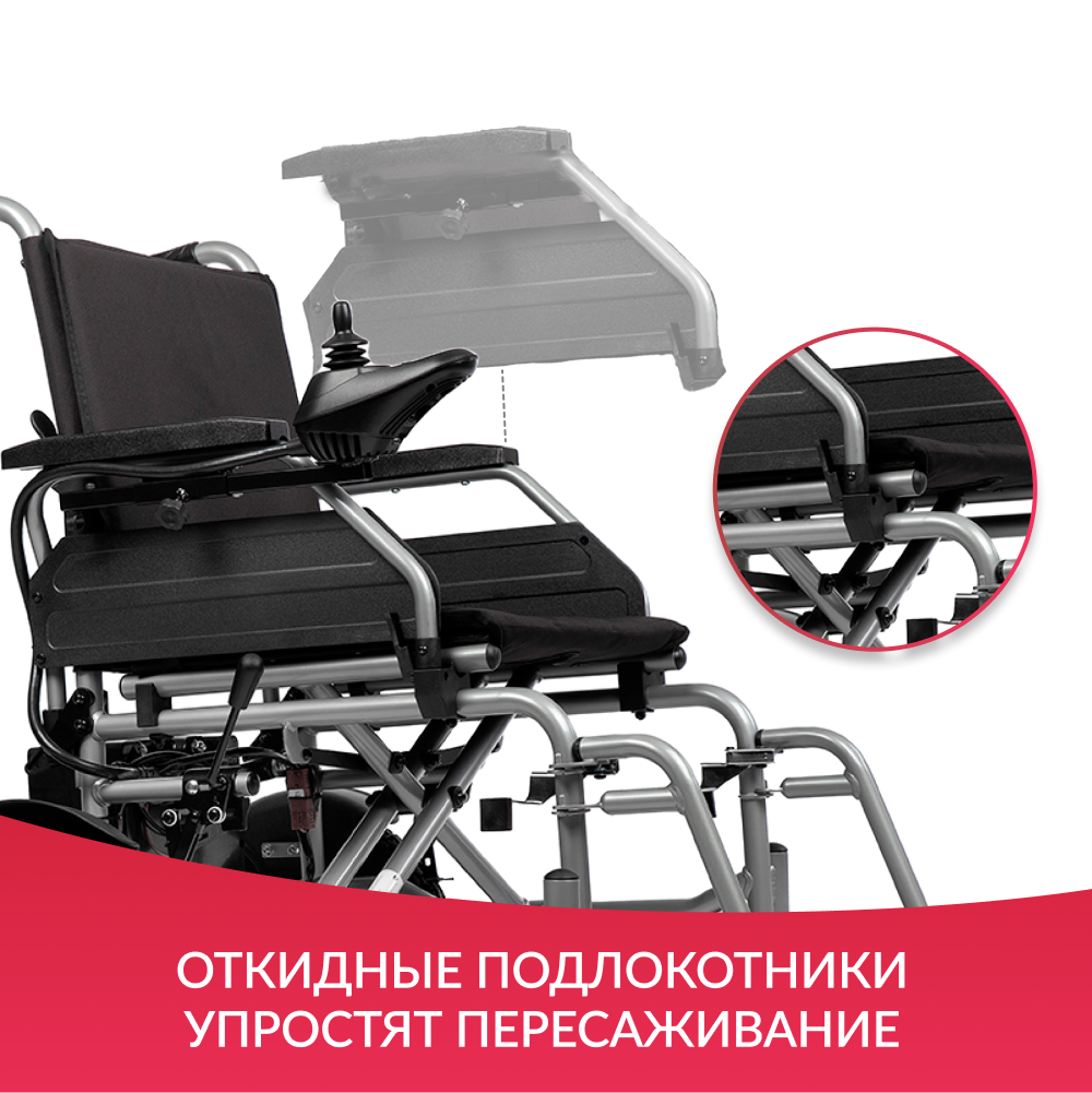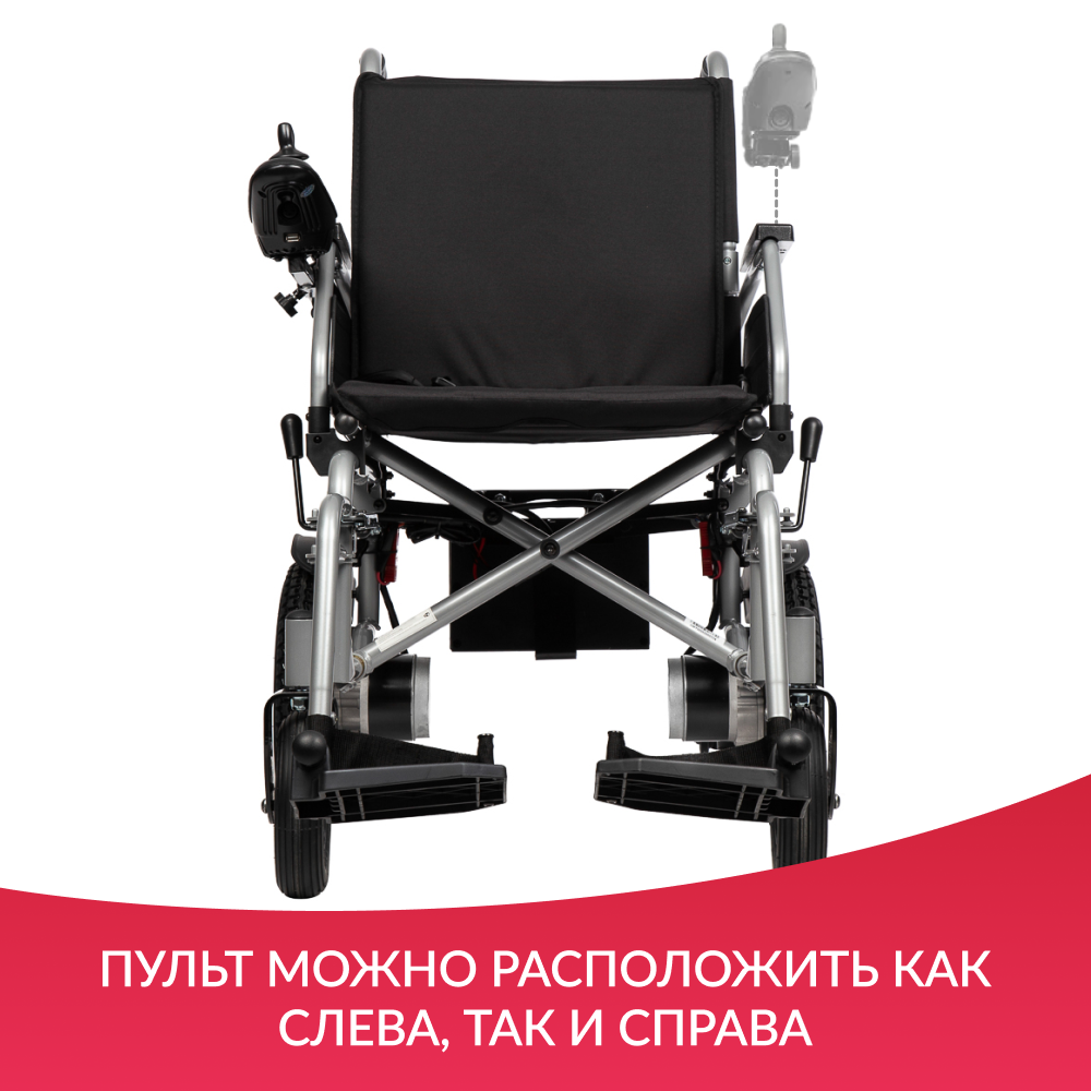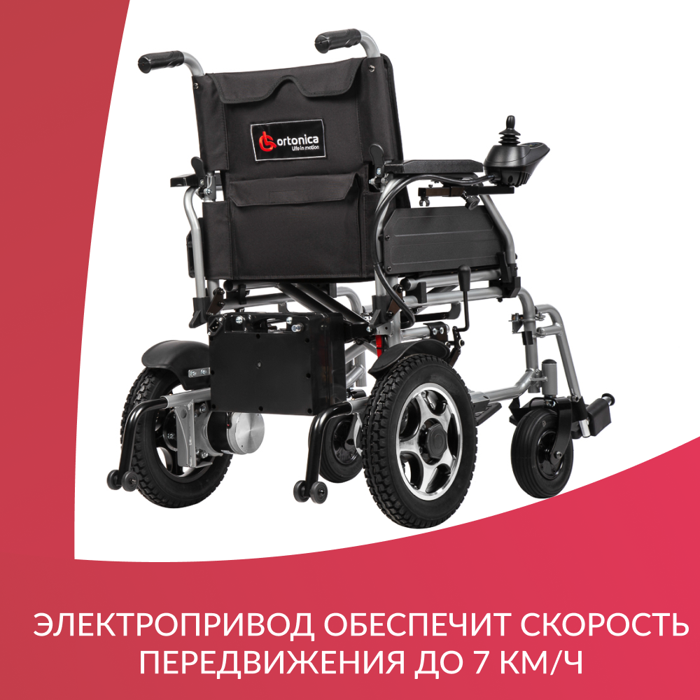 Компактное хранениеЭлектрическая кресло-коляска Pulse 710 имеет прочную раму, которая легко складывается по принципу ножниц. Складная спинка значительно уменьшает размер коляски, что обеспечивают компактное хранение и транспортировку.Удобство в бытуОткидные подлокотники и быстросъемные подножки, регулируемые по высоте, а также откидные подставки для стоп с регулировкой по углу наклона позволяют легко пересаживаться из кресла в кровать и наоборот, удобно в нем располагаться и без ограничений подъезжать к мебели и обеденному столу.Легкость управленияПульт у Ortonica Pulse 710 оборудован кнопками для включения/выключения коляски, звукового сигнала и регулятором скорости, поэтому самостоятельно передвигаться на коляске очень просто. Джойстик можно установить как под левую руку, так и под правую. У кресла-коляски имеются специальные ручки для сопровождающего лица, с помощью которых удобно толкать коляску при отключении электропривода, например, когда аккумулятор израсходован.Комфорт и надежностьВоздухопроницаемая ткань кресла позволяет находиться в нем долгое время без ощущения дискомфорта даже в жаркую погоду. Стальная рама имеет высококачественное покрытие, устойчива к повреждениям и ржавчине. Конструкция коляски способна выдерживать вес до 125 кг. На спинке кресла имеются вместительные карманы для хранения личных вещей пользователя или сопровождающего.БезопасностьЗа безопасность пользователя во время пребывания в кресле отвечают ремень безопасности и антиопрокидыватели. Ремень безопасности легко регулируется по длине и надежно удержит пользователя, не причинив ему дискомфорта. Антиопрокидывающее устройство на колесной опоре не позволит коляске завалиться назад на подъемах.Характеристики