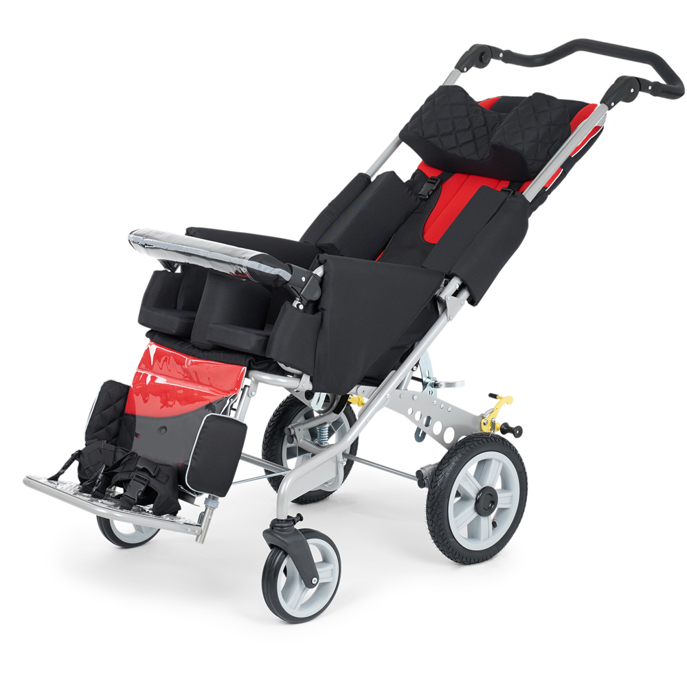 Складная конструкцияБлагодаря удобной складной конструкции коляска занимает минимум места при хранении и без труда помещается в багажник автомобиля. Механизм защищен от внезапного складывания.КомфортабельностьПриятная мягкая дышащая ткань обеспечивает максимально комфортное пребывание в коляске во время прогулок. Удобное и правильное положение головы маленького пользователя обеспечивает функциональный мягкий подголовник. Спинку коляски можно регулировать по углу наклона до 135° для достижения удобного положения Вашего малыша.Правильное положениеПоворотный межбедренный клин-абдуктор необходим для правильного положения ножек, чтобы малыш их не скрещивал и держал правильно. Съемные боковые упоры на липучках предназначены для четкой и удобной фиксации туловища маленького пользователя в кресле.БезопасностьНадежную фиксация маленького пациента в кресле обеспечивают такие элементы, как защитный жилет, который без труда застегивается и расстегивается, боковые пелоты, барьер безопасности и абдуктор.Единая подножкаРегулируемая единая подножка со специальными фиксирующими ремнями для стоп без труда настраивается по углу наклона и по длине.Для мам и пап!Производитель подумал и о сопровождающем: сплошная ручка управления имеет удобную форму и возможность настройки положения; на спинке расположен карман для вещей на резинке.Колесная базаПоворотный механизм блокируемых передних колес - отличительная особенность данной коляски. Кроме маневренности и отличной управляемости это свойство колес дает возможность преодолевать неровности дороги без подъема коляски, не тревожа маленького пациента. Задние колеса пневматические с независимой тормозной системой.Характеристики
