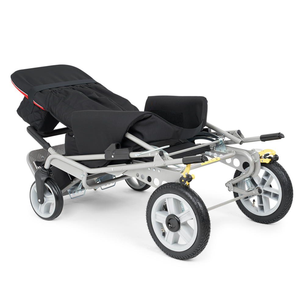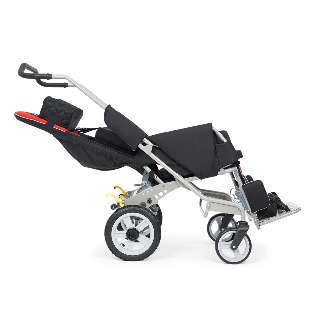 ОсобенностиВнешне не отличается от обычной детской коляски. Съемные боковые поддержки, противопролежневая подушка. Передние поворотные колеса.