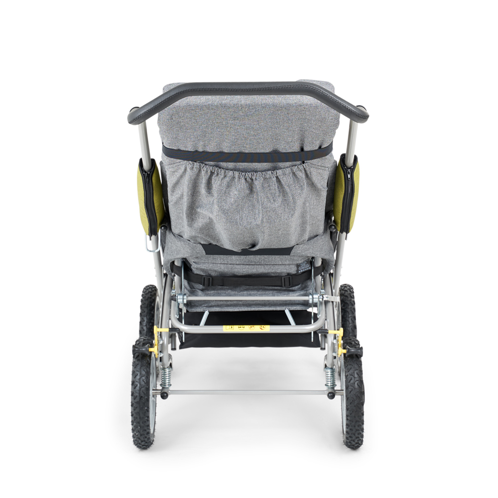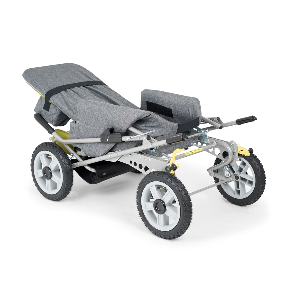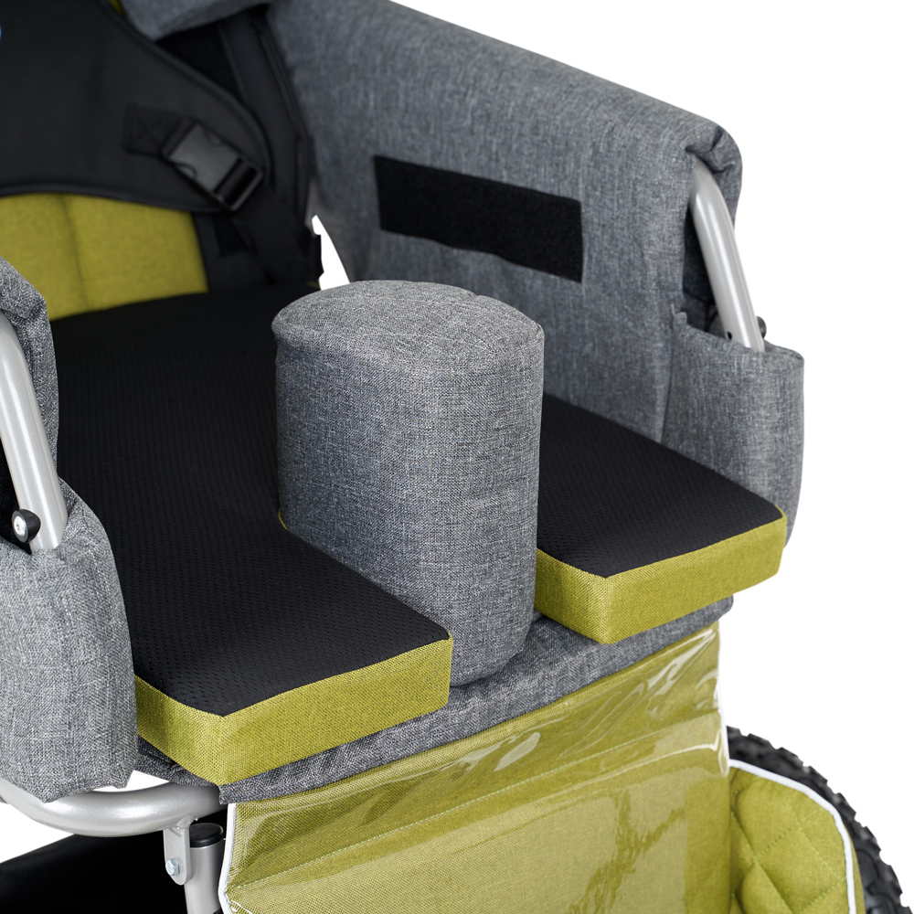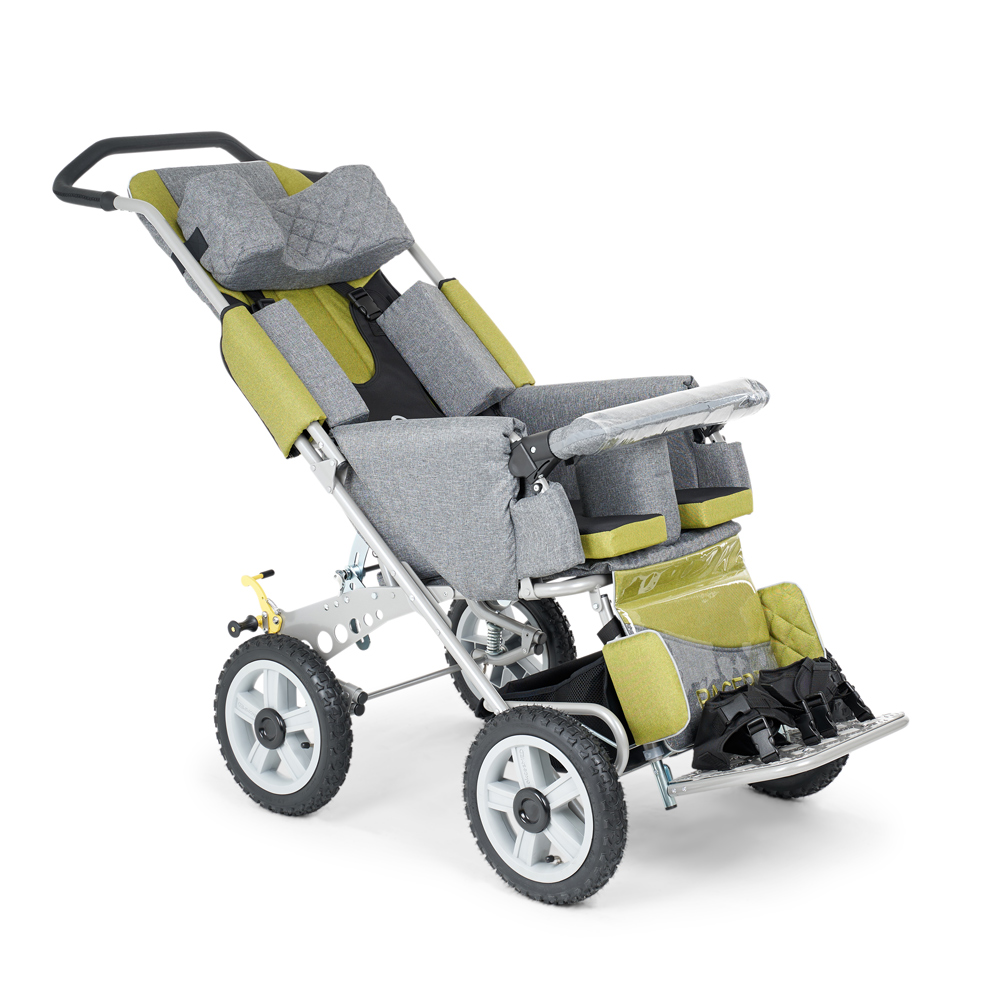 ОсобенностиВнешне не отличается от обычной детской коляски. Съемные боковые поддержки, противопролежневая подушка.