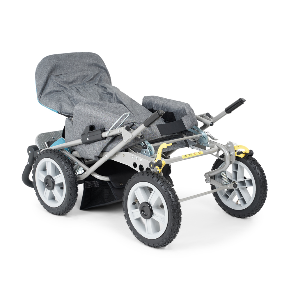 ОсобенностиВнешне не отличается от обычной детской коляски. Съемные боковые поддержки, противопролежневая подушка.