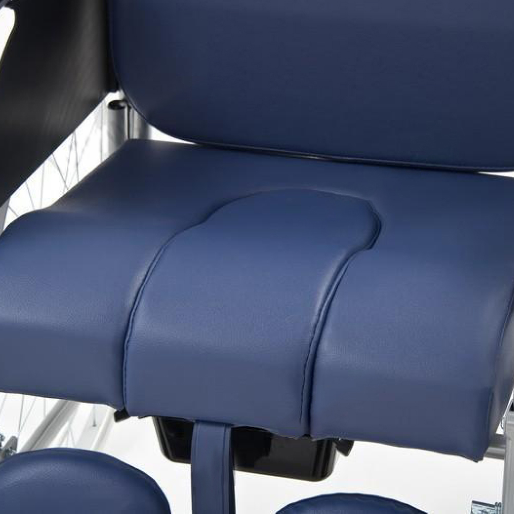Комфорт в деталяхСиденье и спинка кресла изготовлены из огнеупорного кожзаменителя, который легко чистить. Для удобства подъезда к столу коляска имеет удлиненные съемные подлокотники. Подножки с икроножными упорами настраиваются по углу наклона. Дополнительно можно оснастить кресло фиксирующими элементами, опорами и столиком из пластика или дерева.Санитарное оснащениеСъемный санитарный контейнер из прочного пластика устанавливается под сидением и легко чистится любыми дезинфицирующими средствами. Судно практически незаметно со стороны, поэтому пользователю будет комфортнее в присутствии посторонних. Также коляску можно устанавливать над унитазом: чтобы посетить туалетную комнату, пользователю не придется вставать с кресла.Характеристики