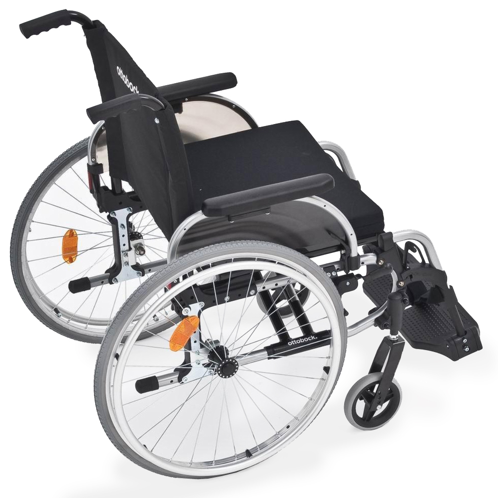 Otto Bock Старт предназначена для людей с разной степенью активности. Кресло-коляска с проколозащищенными шинами, сглаживающими неровности любых покрытий, предназначена для передвижения по улице. Ширина сиденья 50,5 см позволяет удобно расположится в кресле, не стесняя движений.