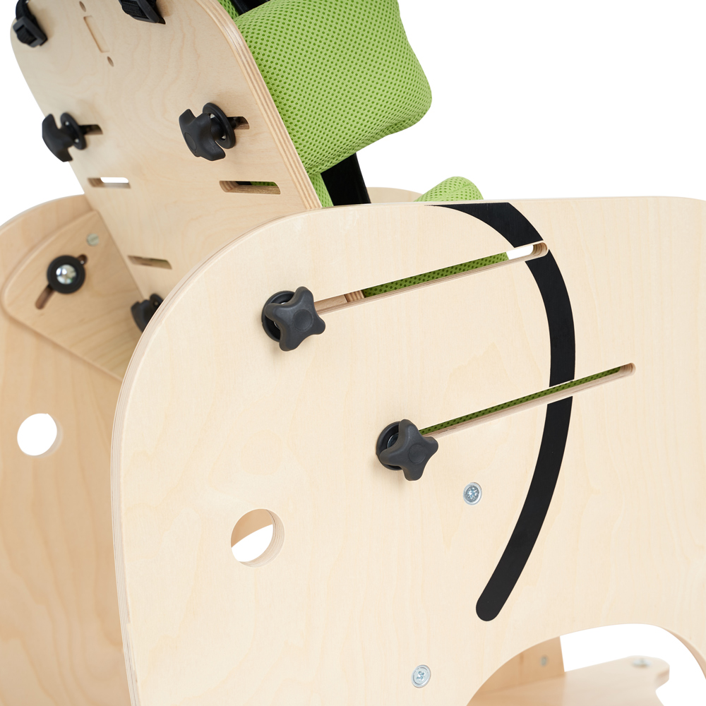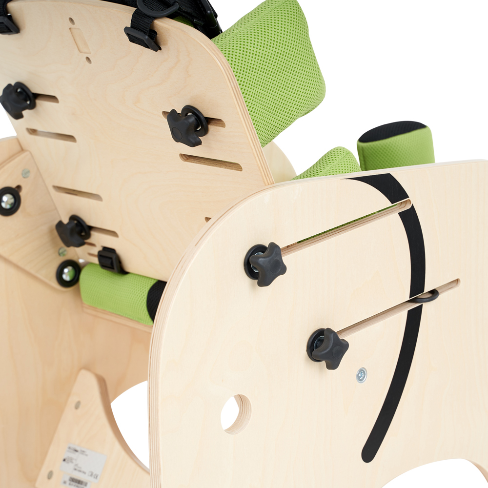 Akces-med Слоненок – это реабилитационное кресло для детей с разными видами ДЦП, которое предназначено для начальной реабилитации детей в положении сидя. Устройство выполнено из экологической древесины и окрашено в яркие цвета, что обязательно понравится Вашему ребенку. Боковые подушки можно регулировать, что помогает корректировать изъяны осанки. Кресло предназначено для пользования детьми весом до 30 кг и ростом до 130 см.