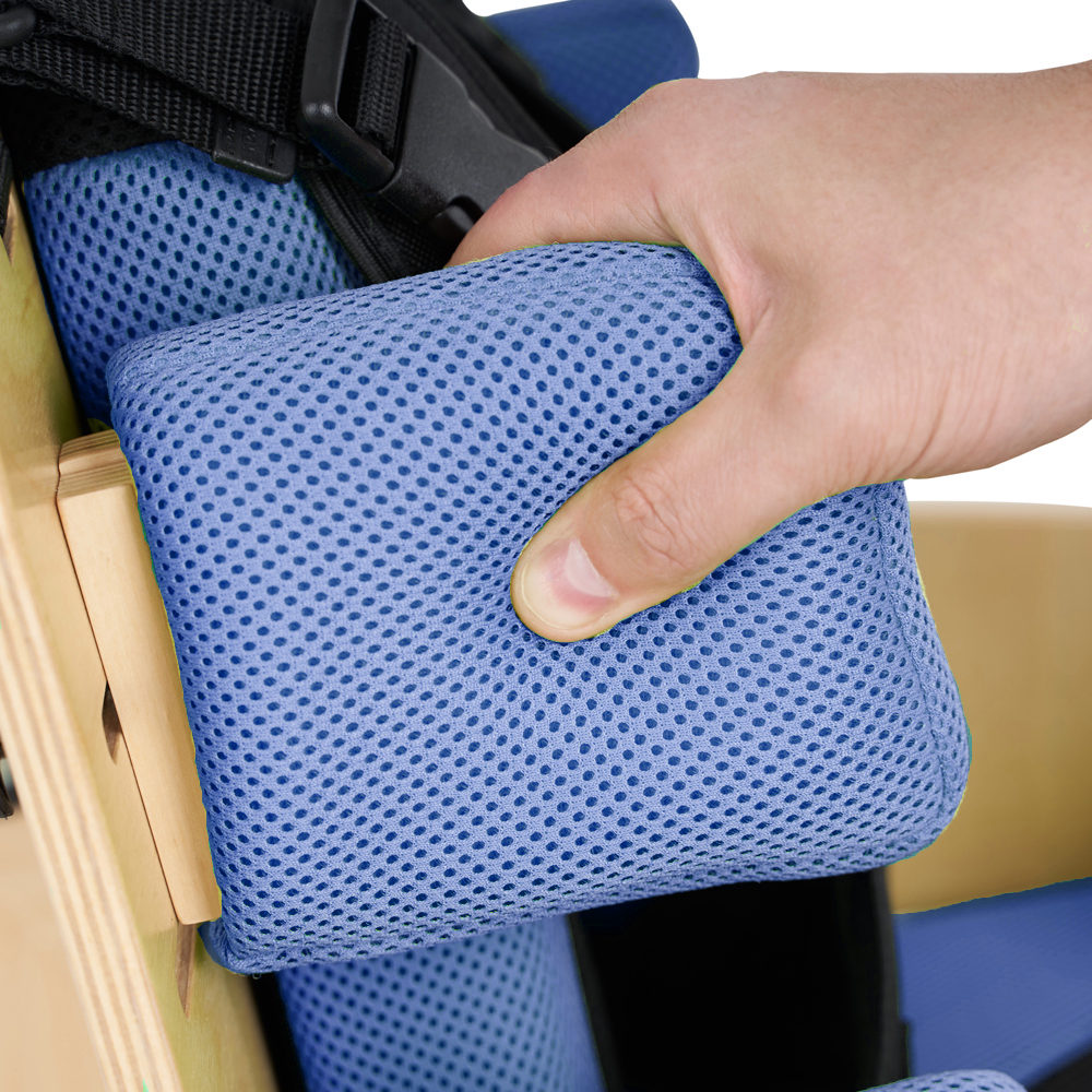 Мягкая тканьСпинка, сиденье и различные фиксаторы с мягкой обивкой с приятной сетчатой тканью не вызывают дискомфорта, за счет чего пользователь чувствует себя в кресле удобно.РегулировкиВозможность настроить сиденье по глубине позволяет использовать кресло для детей различного роста, а также в течение взросления ребенка. Реабилитационное кресло оснащено мягкой съемной подушкой спинки, изготовленной из пенки с яркой обивкой. В зависимости от дисфункции и в целях выбора оптимального положения ребенка в кресле вы можете настроить подходящий угол наклона спинки.Надежная фиксацияКресло также снабжено специальными бедренными пелотами. Их положение по ширине и по углу наклона легко настраивается. Для четкой фиксации туловища ребенка в коляске предусмотрены грудные пелоты, положение которых при необходимости можно настроить по ширине и по углу наклона. Клин-абдуктор не доставляет дискомфорта за счет мягкой обивки, сохраняет правильное положение ножек. Его положение также регулируется (вперед/назад).Характеристики