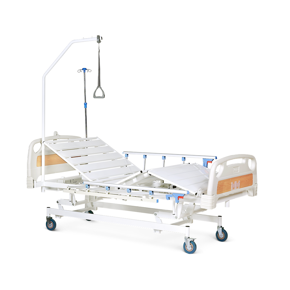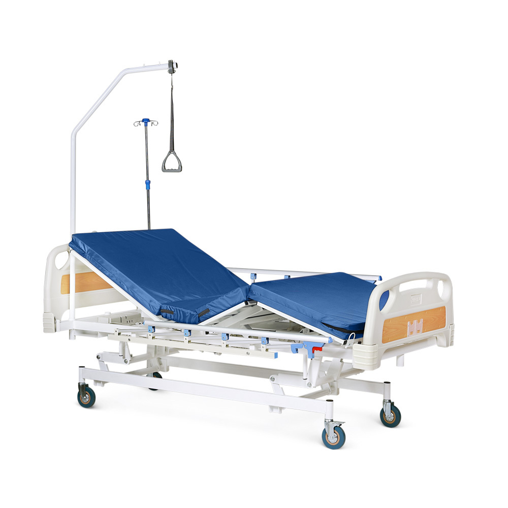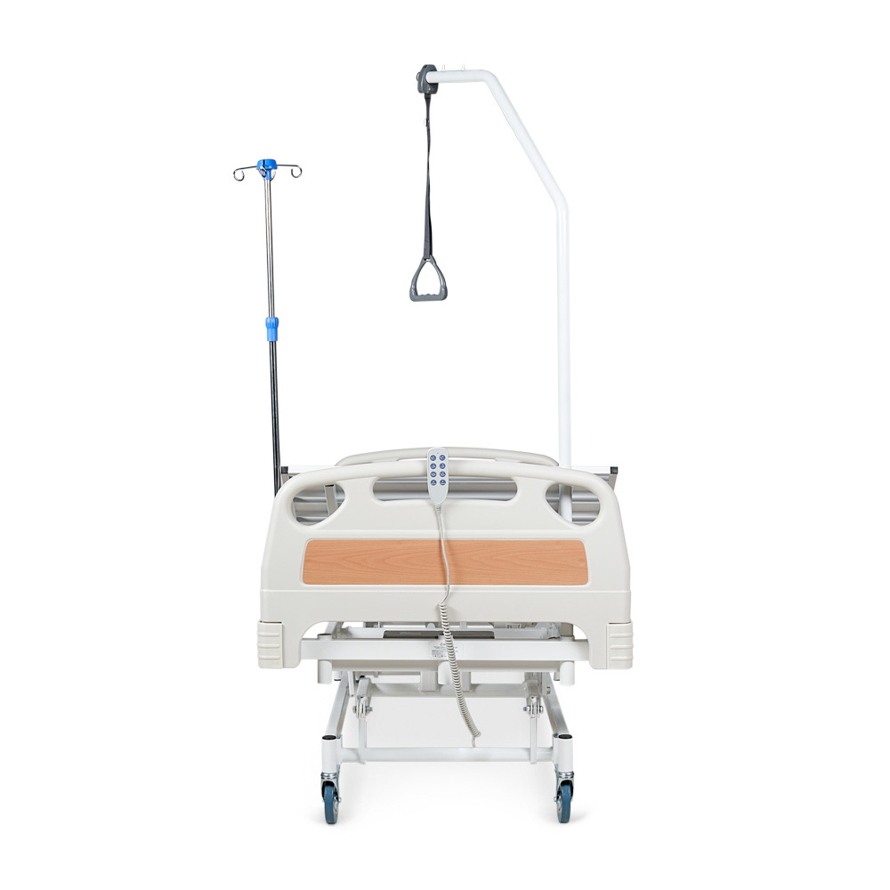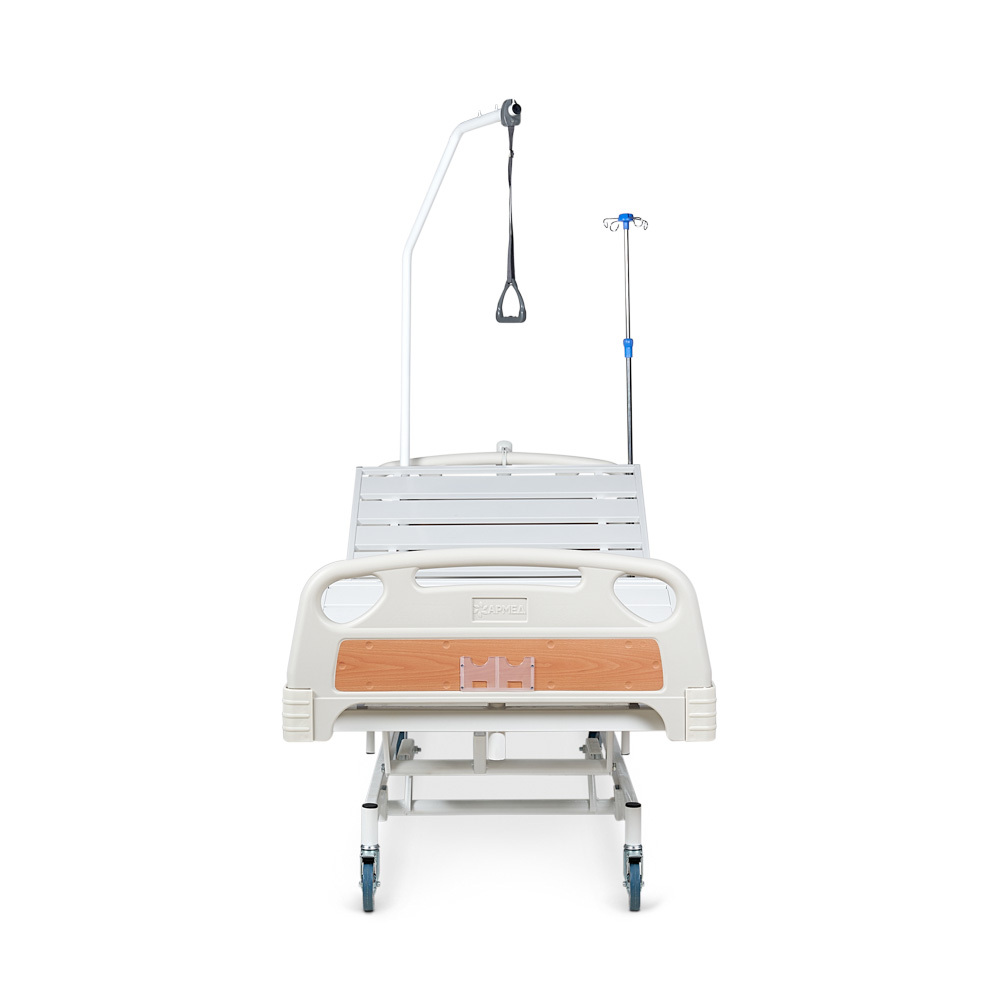 Регулировка секцийЛожемент кровати состоит из четырех прочных металлических секций с регулируемым углом наклона двух из них: головной и тазобедренной. Голеностопная секция фиксируется механизмом-гребенкой. Управление положением головной и тазобедренной секций происходит с помощью пульта ДУ, которым может пользоваться и сам пациент.Регулировка высоты ложаДля удобного ухода за пациентом можно регулировать высоту ложемента. Делать это просто и удобно с помощью пульта ДУ.БезопасностьДля защиты пациента от падений кровать дополнена съемными боковыми рейлингами из стали. Чтобы опустить их, достаточно зажать кнопочный фиксатор и нажать на ограждение.Удобство в деталяхТорцевые спинки съемные, выполнены из ударопрочного ABS-пластика и декорированы вставками под дерево – отличный вариант для дома. Для защиты кровати от ударов предусмотрены специальные угловые бамперы.МатрасодержательДля надежной фиксации матраса предусмотрен матрасодержатель, который можно установить в любом месте кровати.Характеристики