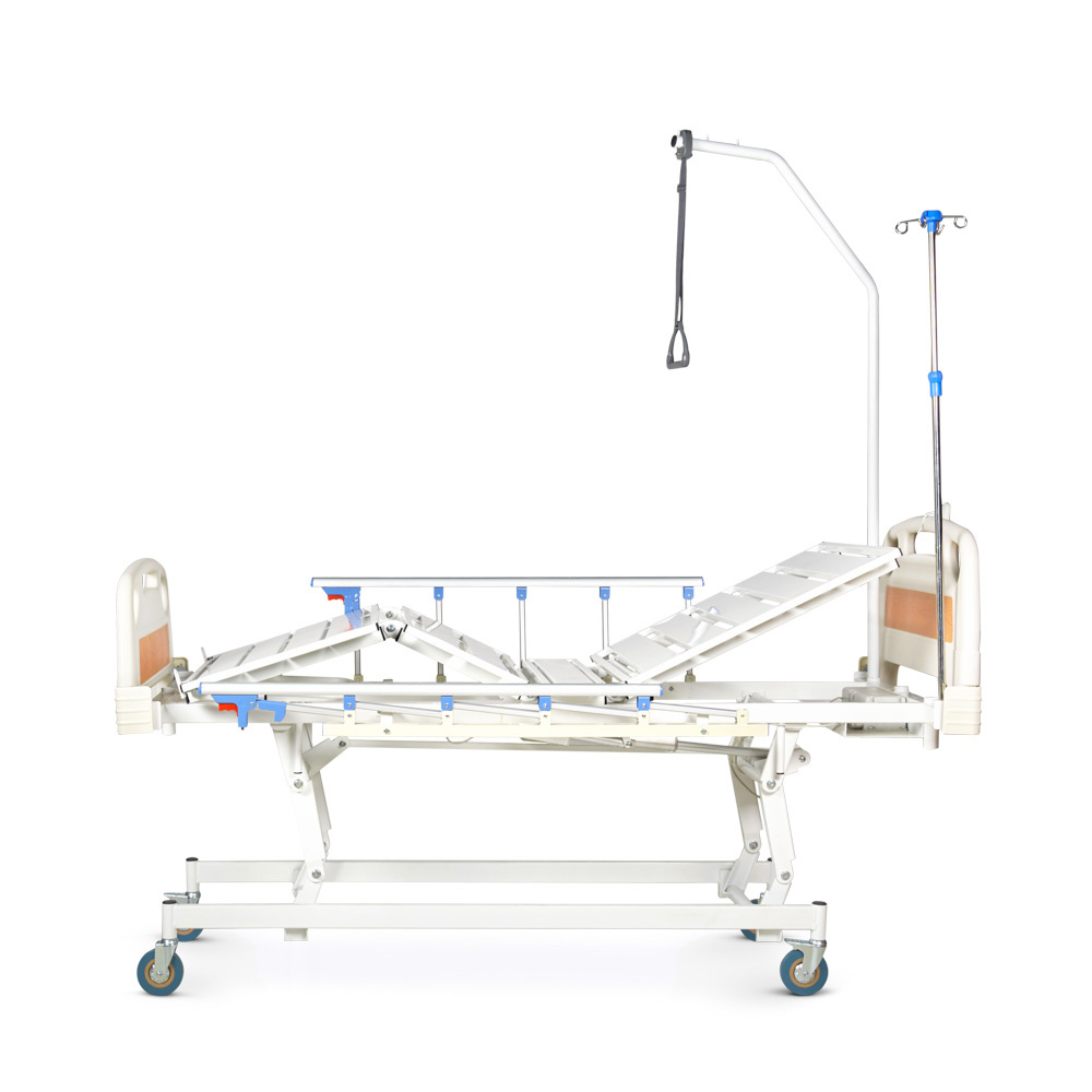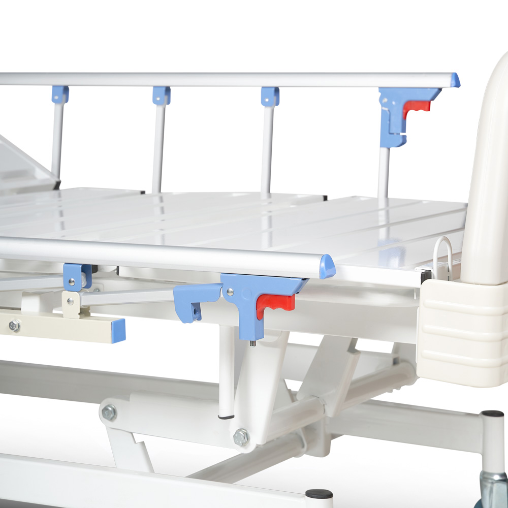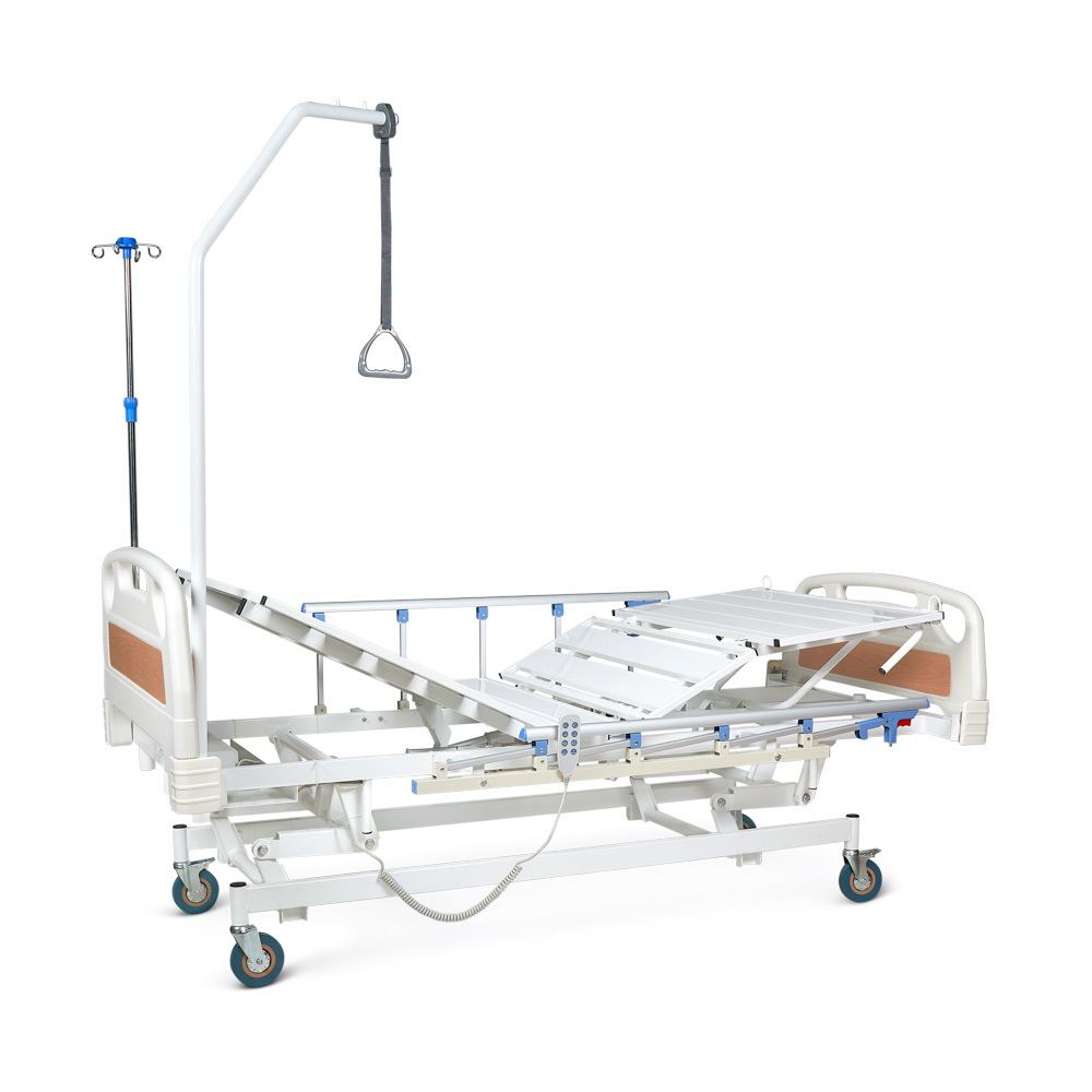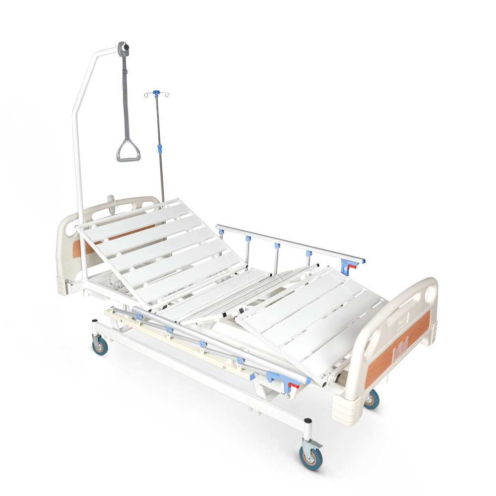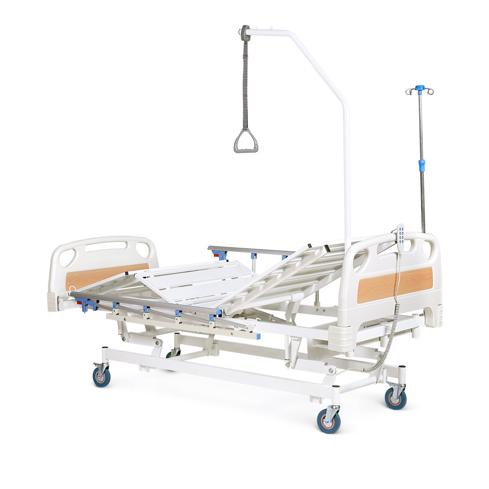 Регулировка секцийЛожемент кровати состоит из четырех прочных металлических секций с регулируемым углом наклона двух из них: головной и тазобедренной. Голеностопная секция фиксируется механизмом-гребенкой. Управление положением головной и тазобедренной секций происходит с помощью пульта ДУ, которым может пользоваться и сам пациент.Регулировка высоты ложаДля удобного ухода за пациентом можно регулировать высоту ложемента. Делать это просто и удобно с помощью пульта ДУ.БезопасностьДля защиты пациента от падений кровать дополнена съемными боковыми рейлингами из стали. Чтобы опустить их, достаточно зажать кнопочный фиксатор и нажать на ограждение.Удобство в деталяхТорцевые спинки съемные, выполнены из ударопрочного ABS-пластика и декорированы вставками под дерево – отличный вариант для дома. Для защиты кровати от ударов предусмотрены специальные угловые бамперы.МатрасодержательДля надежной фиксации матраса предусмотрен матрасодержатель, который можно установить в любом месте кровати.Характеристики