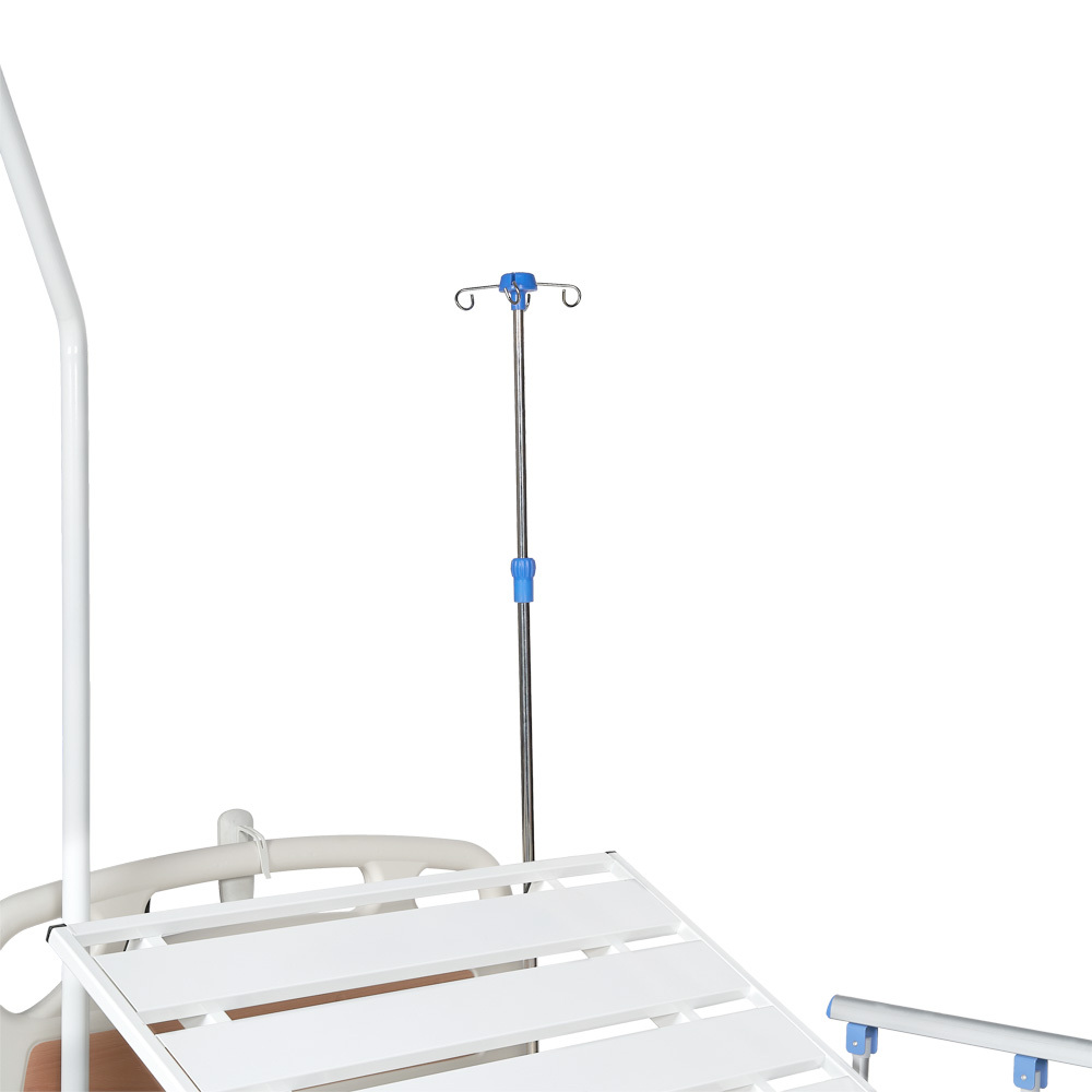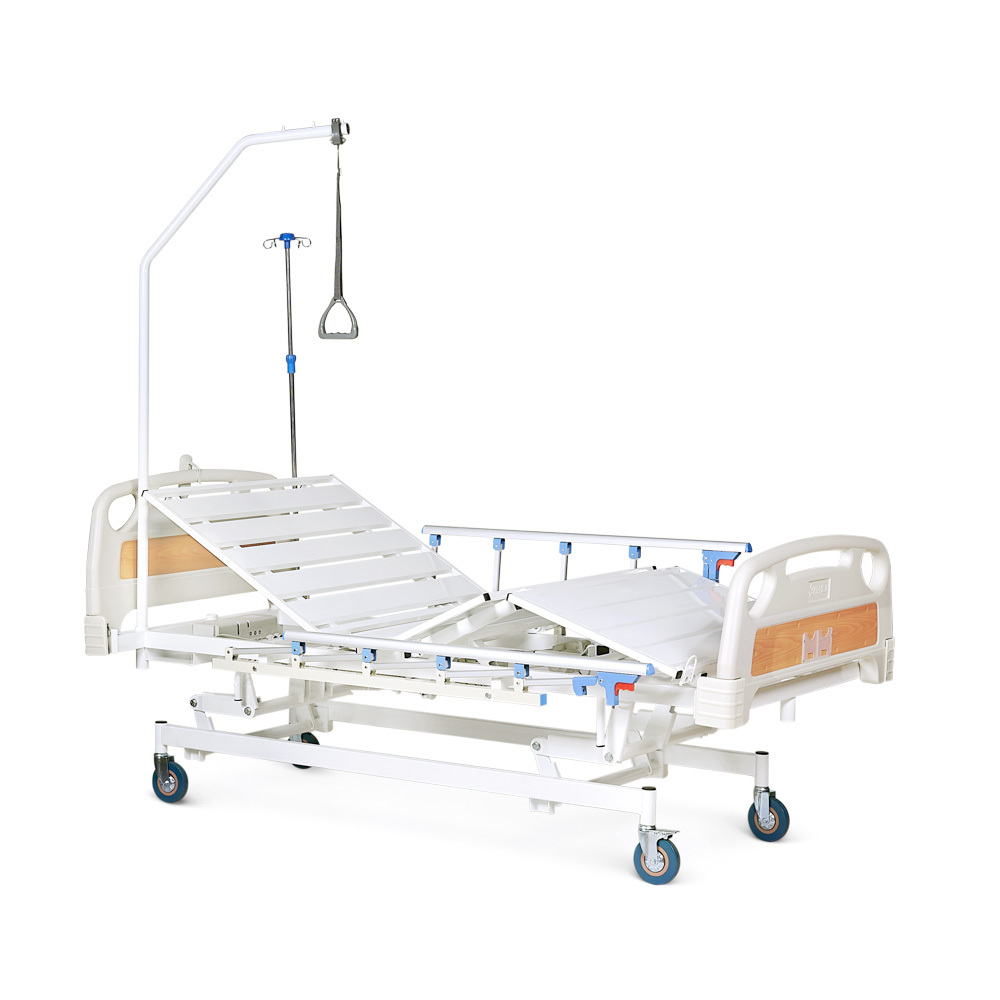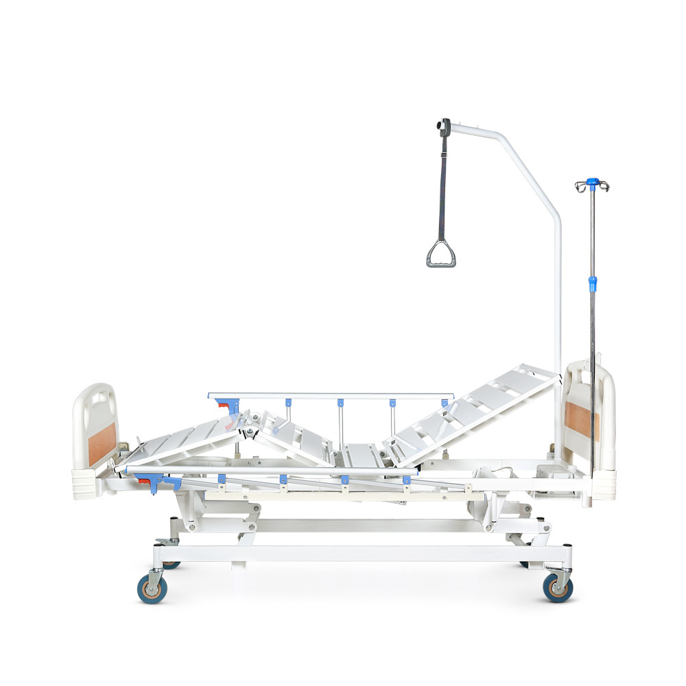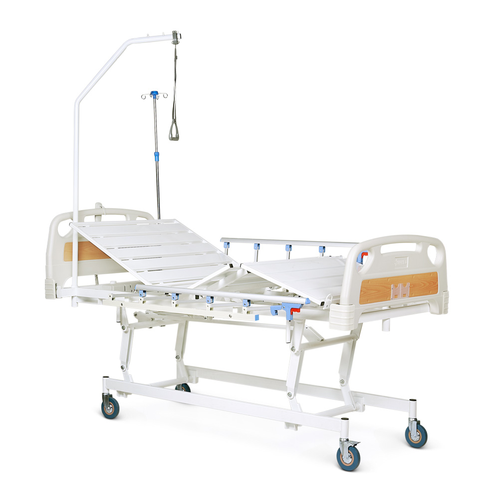 Регулировка секцийЛожемент кровати состоит из четырех прочных металлических секций с регулируемым углом наклона двух из них: головной и тазобедренной. Голеностопная секция фиксируется механизмом-гребенкой. Управление положением головной и тазобедренной секций происходит с помощью пульта ДУ, которым может пользоваться и сам пациент.Регулировка высоты ложаДля удобного ухода за пациентом можно регулировать высоту ложемента. Делать это просто и удобно с помощью пульта ДУ.БезопасностьДля защиты пациента от падений кровать дополнена съемными боковыми рейлингами из стали. Чтобы опустить их, достаточно зажать кнопочный фиксатор и нажать на ограждение.Удобство в деталяхТорцевые спинки съемные, выполнены из ударопрочного ABS-пластика и декорированы вставками под дерево – отличный вариант для дома. Для защиты кровати от ударов предусмотрены специальные угловые бамперы.МатрасодержательДля надежной фиксации матраса предусмотрен матрасодержатель, который можно установить в любом месте кровати.Характеристики