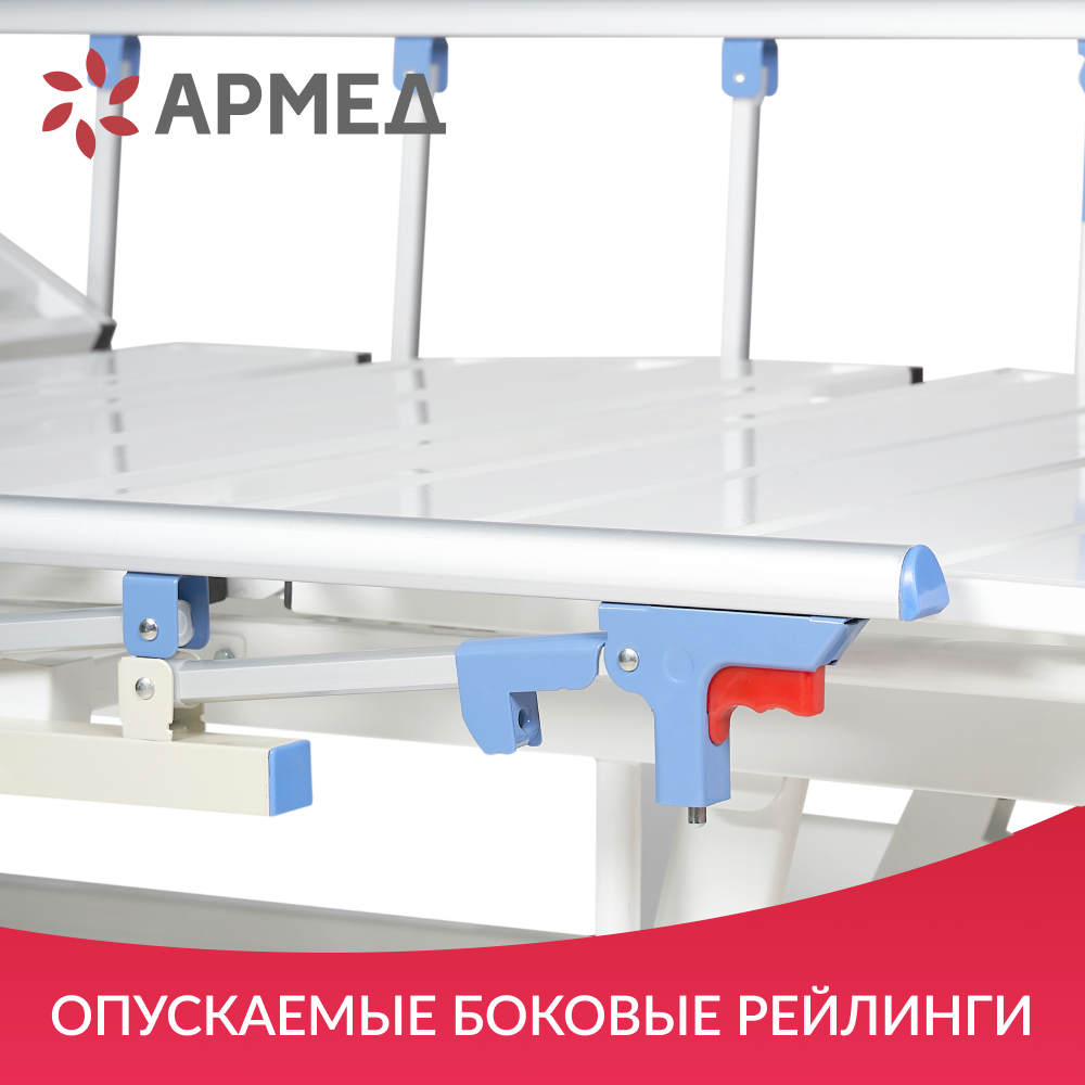 Медицинская кровать Армед РС201 - функциональное решение для реабилитации лежачих пациентов дома и в стационарах. Кровать имеет четырехсекционное ложе: две секции регулируются по углу наклона, а само ложе настраивается по высоте. Сделано в России.