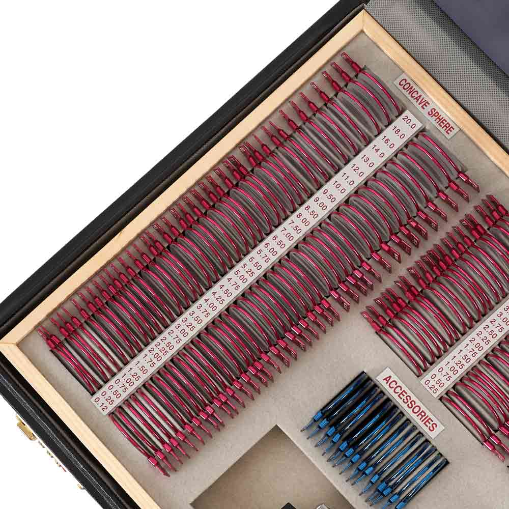 ПРИЗМАТИЧЕСКИЕ ЛИНЗЫПризматические линзы применяются при проверке косоглазия, скрытого косоглазия, а также для тренировки структур глаза. В набор входят линзы в диапазоне от 0,5 до 10,0 пр. диоптрий.ЦИЛИНДРИЧЕСКИЕ ЛИНЗЫПарные вогнутые линзы (-) и выпуклые (+) линзы в диапазоне от -0,25 до +6,00 дптр используются для исследования и коррекции астигматизма.СФЕРИЧЕСКИЕ ЛИНЗЫВогнутые сферические линзы (-) используются для коррекции старческой дальнозоркости и миопии (сильной клинической рефракции). Выпуклые сферические линзы (+) используются для коррекции гиперметропии (сильной клинической рефракции). Диапазон: -20,00 до +20,00 дптр.ВСПОМОГАТЕЛЬНЫЕ ЛИНЗЫВспомогательные линзы, предназначенные для различных вспомогательных исследований зрения: точечная и щелевая диафрагмы, матовая пластина, полуматовая пластина, цилиндр Мэддокса, линза с перекрестием, красный и зеленый светофильтры, скрещенные цилиндры, плоскопараллельная пластина.Характеристики