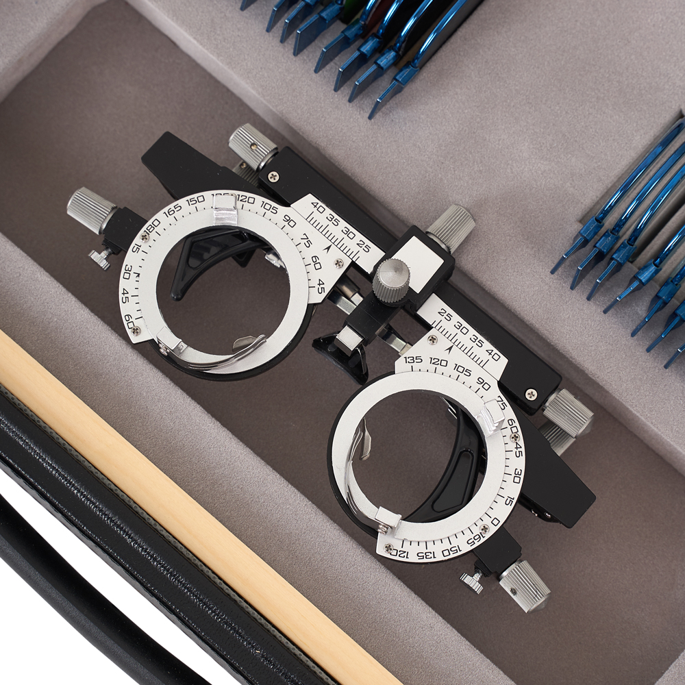 УниверсальностьВ набор входит универсальная пробная оправа, которая отлично подходит для различных форм и размеров головы. Оправа позволяет установить до 4-х пар линз.Сферические линзыВогнутые сферические линзы (-) используются для коррекции старческой дальнозоркости и миопии. Выпуклые сферические линзы (+) применяются используются для коррекции гиперметропии.Призматические линзыПризматические линзы в диапазоне от 0,5 до 10,0 диоптрий часто применяются для проверки косоглазия и скрытого косоглазия, а также при тренировке структур глаза.Характеристики