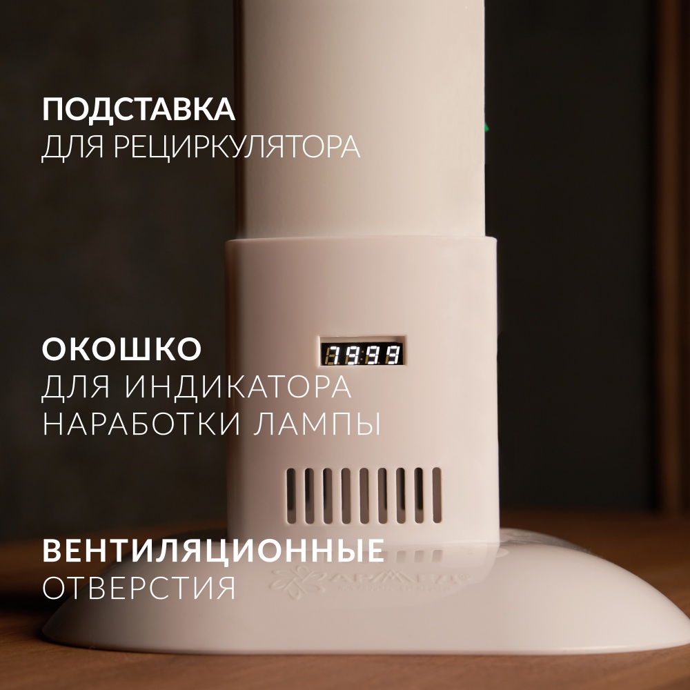 Подставка Армед Home M в классическом белом цвете изготовлена из прочного пластика для одноламповых рециркуляторов в металлическом корпусе. Корпус подставки предусматривает специальные отсеки для отведения провода, а также для цифрового дисплея и вентиляционных отверстий.