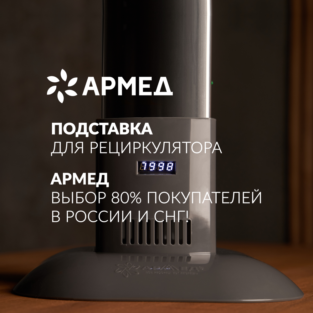 Подставка серого цвета из прочного пластика разработана специально для одноламповых рециркуляторов Армед в металлическом корпусе. Конструкция очень проста и состоит из двух частей, предусматривает вентиляционные отверстия и окошко для индикатора наработки лампы.