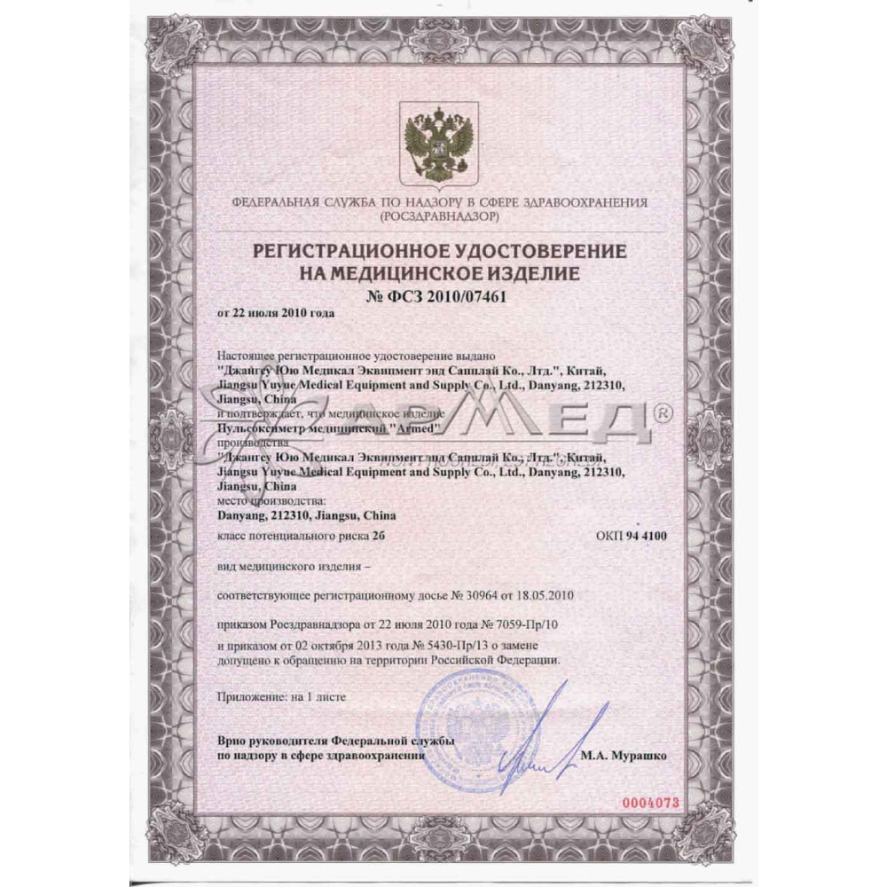 Пульсоксиметр Армед YX300 внесен в государственный реестр средств измерений, что подтверждает его высокую точность и надежность.