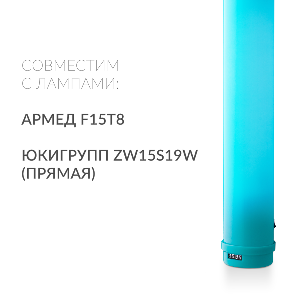 ПроизводительностьРециркулятор эффективно очищает воздух от возбудителей ОРВИ, ГРИППа и других заболеваний дыхательных путей. Всего за один час работы он способен очистить воздух в помещении объемом до 30 м³.БезопасностьСпециальная конструкция рециркулятора не пропускает УФ-излучение лампы наружу, поэтому Ваша семья и домашние животные смогут находиться рядом с работающим устройством без малейшего риска для здоровья. УФ-лампа рециркулятора работает до 8000 часов – специальный индикатор, отображающий срок работы лампы, поможет понять, когда нужно будет ее заменить.Лаконичный дизайнДанная модель отличается стильным голубым цветовым решением и компактностью, что позволяет органично вписать ее в домашний интерьер. А практически бесшумная работа не нарушит сон самого чуткого малыша и не помешает работе. Вы можете легко разместить прибор на стене – в комплекте идут специальные крепежи или приобрести удобную подставку в цвет корпуса для возможности его перемещения.Гарантия качестваОблучатель-рециркулятор Армед является медицинским прибором и имеет регистрационное удостоверение. В результате ряда научных исследований НИИ Дезинфектологии Роспотребнадзора была доказана эффективность рециркуляторов Армед против бактериальных и вирусных инфекций. Устройства показали себя как надежный способ обеззараживания воздуха различных помещений в профилактических целях, а также в комплексе противоэпидемиологических мероприятий.Характеристики