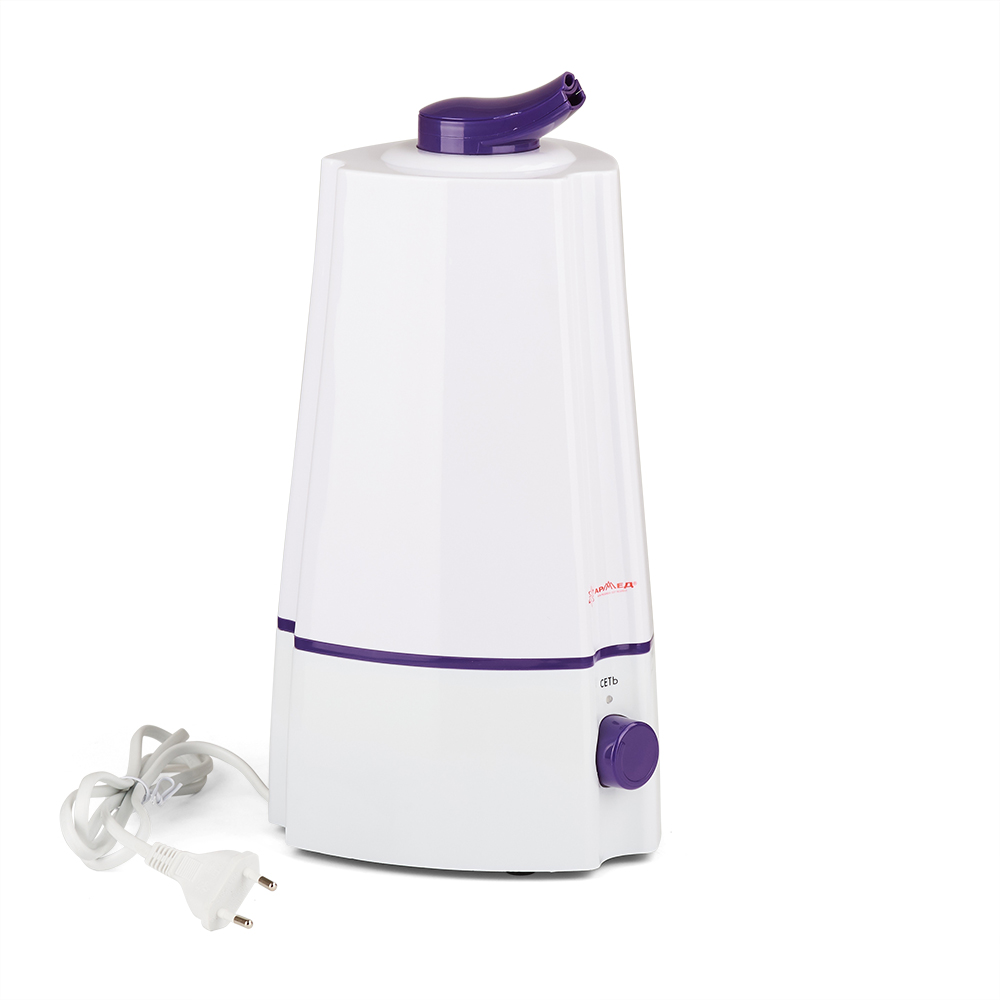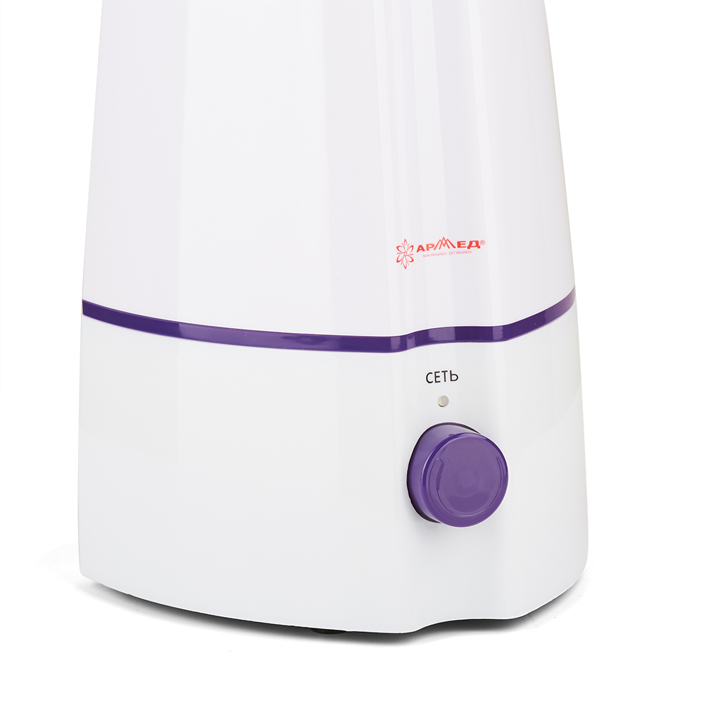 Увлажнитель воздуха Армед HQ-UH811E - электрическая модель увлажнителя для дома. Конструкция включает поворотный распылитель. Изделие отличается лаконичным дизайном и привлекательным оформлением: белый корпус увлажнителя дополнен контрастными фиолетовыми вставками.