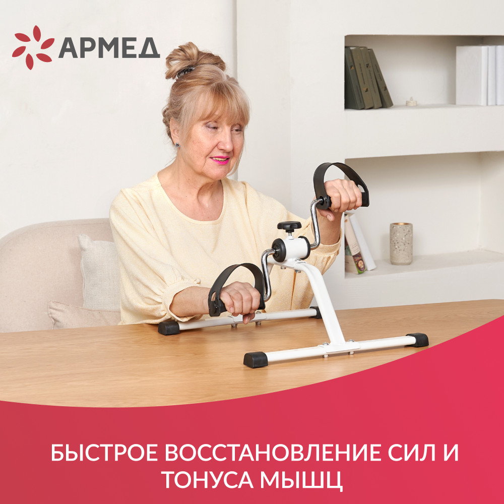 Реабилитационный тренажер Армед HJ-088A – это простой и легкий велотренажер, который используется в ЛФК во время восстановительного периода после травм или операций. Устройство отлично подходит как для разработки мышц рук, так и ног людям с различными нарушениями двигательной функции.