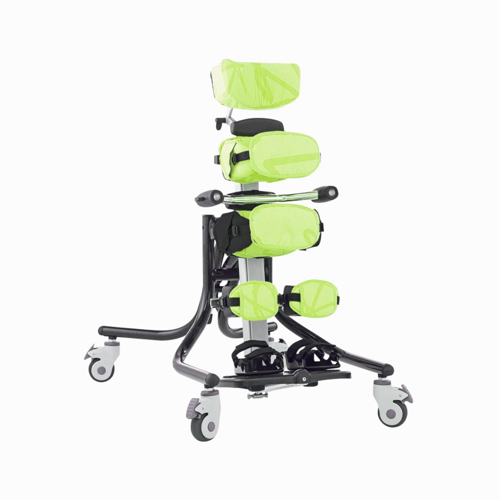 Вертикализатор Сквигглз предназначен для самых маленьких пользователей с ДЦП от 1 до 5 лет. Кресло Сквигглз дополнено системой поддержки плечевого пояса, благодаря чему устраняется переразгибание в верхней части туловища, руки располагаются ближе к средней линии, а это, в свою очередь, создает условия для их функционального использования. Контурный подголовник регулируется по высоте и углу наклона.